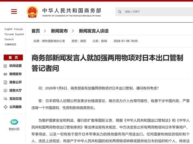 日本见抗议无效,现在开始换套路了。针对中国对出口日本军民两用物项的限制禁令,日本经济专家高辻成彦今天开始“警告”中国了。他说:中国对日本进行限制,当然会造成日本的困扰,但中方如此单方面的打压日本,势必会加剧日本国内对中国的“反感”,进而推高高市早苗的国内支持率。他还强调“中国最好认清这一点”。 高辻成彦的言论出现在日本电视新闻网报道中,针对中国商务部2026年第1号公告。该公告禁止所有两用物项对日本军事用户和有助于提升军事实力的用途出口,涵盖稀土等资源。这项措施直接影响日本芯片产业和军工生产,导致供应链中断和成本上升。高辻成彦指出,中国这种单方面行动会引发日本民众负面情绪。许多人通过社交媒体表达不满,增加对中国的反感。这种情绪可能转化为政治支持,推动高市早苗内阁民调上升。高市早苗的对华政策被视为强硬,符合部分民众期望。他提醒中方注意这个后果,避免关系进一步恶化。 高辻成彦还分析国际影响,认为中方举措让日本获得更多盟友同情。在贸易谈判中,日本能争取欧盟等理解。他希望中方停止措施,减少对两国经济的损害。他的言论被视为日本应对策略转变,从外交抗议转向舆论引导。日本政府已通过外务省向中方提出抗议,要求撤回管制。高辻成彦强调,中方行为只会加剧紧张,无益于双方。他的观点基于过去经验,如2022年对美日出口管制评论,指出类似措施打击本国企业。他的表态反映日本学术界对贸易摩擦的担忧。 中国商务部公告基于维护国家主权安全,日本领导人近期言论是直接原因。高市早苗上任后,针对台湾问题表示若发生冲突,日本可行使集体自卫权。这引发中方回应,强调日本需尊重核心利益。管制措施符合国际法,针对日本特定用途,不影响其他国家。日本抗议称偏离国际惯例,但中方坚持必要性。芬兰外长瓦尔托宁与中国通话,中方说明管制前因后果,显示负责任态度。管制类似于欧盟对俄措施,但中国仅针对日本,避免殃及无辜。这体现了精准策略,打断日本关键供应链。 日本资源依赖进口,稀土断供会重创高端制造业。相比俄罗斯,日本抗风险能力弱,国家收入靠进出口。管制落地后,日本可能转向美国采购,但成本更高。中俄关系稳定,日本难以从俄罗斯获得替代资源。这形成中美俄三方压力。高辻成彦的警告试图扭转舆论,称中方行为让国际社会同情日本。但实际中,管制获得理解,如专家指出日本安全政策变化触发此举。日本需用实际行动恢复关系基础。高辻成彦继续在大学工作,未卷入更多事件。 日本内阁官房长官木原稔在记者会上表示,管制不符合国际惯例,要求立即撤回。外务省亚洲大洋洲局局长金井正彰向中国驻日大使馆公使施泳递交抗议。中国商务部新闻发言人回应,这是必要行动,日本言论侵犯核心利益。外交交流持续,日本多次表达不满,中方坚持立场。高辻成彦的言论被媒体放大,但未改变管制实施。他的观点引发讨论,日本网民意见分化,有的担忧经济影响,有的支持政府立场。管制公告后,日本企业评估影响,寻求供应链调整。