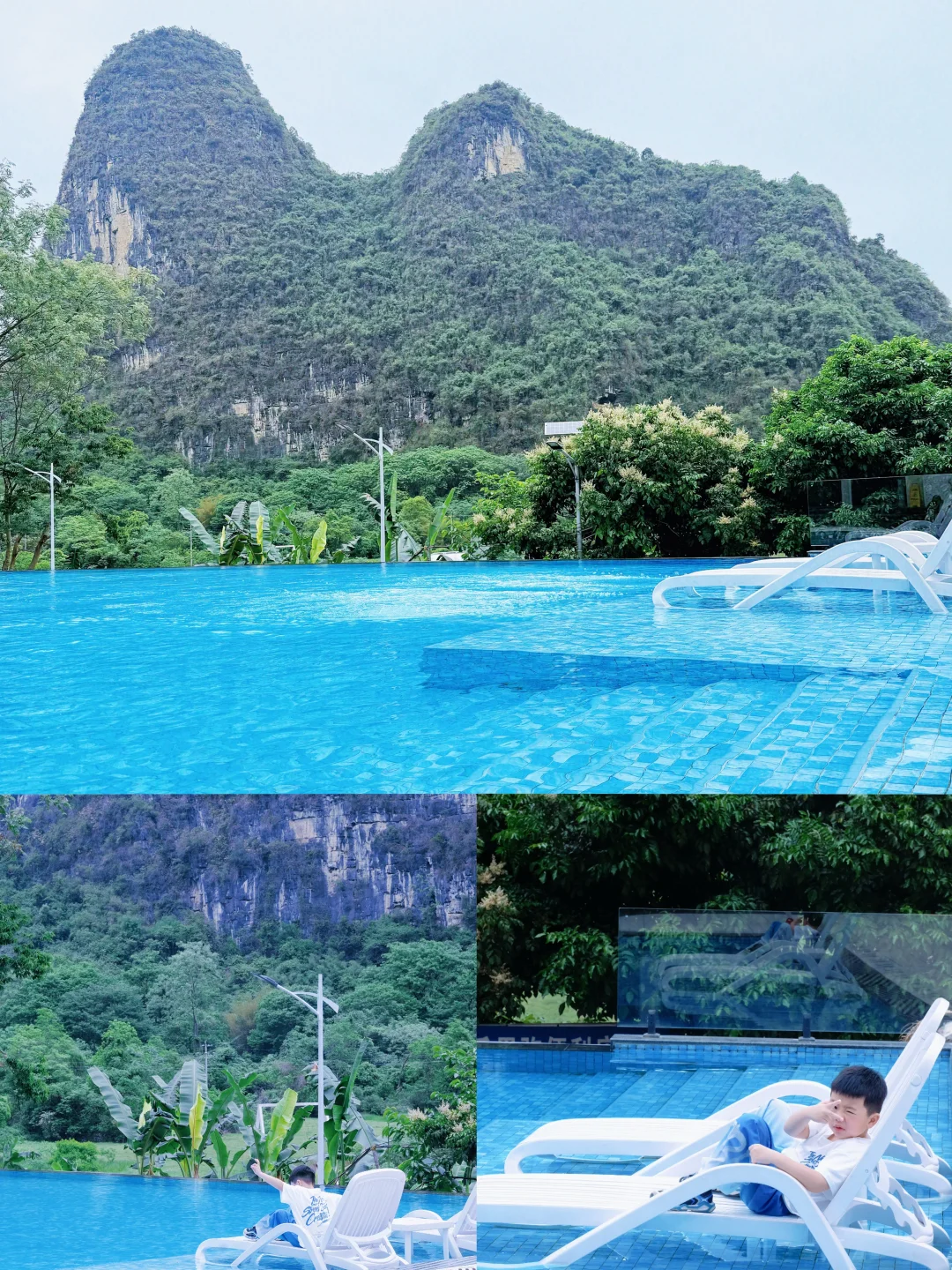 遛娃遛累了😭跟着我这个路线,来阳朔 躺平式遛娃吧! Day1:度假酒店🏨瘫 10:00 泳池水枪大战(防晒霜要抹三遍) 15:00 后山喂萌宠+做非遗手工(管家免费教) 19:00 草坪露天电影+晚安甜品 Day2:周边晃🛵 租辆小电驴突突到十里画廊,回程绕道遇龙河,让筏工带孩子冲最小号的堤坝(湿身预警!) ⚠️要提前预约,别迷信哪一段,人少感受才好! Day3:佛系打卡 睡到自然醒去吃民宿早餐的桂林米粉,比西街的清爽十倍。晃晃悠悠15分钟到千古情,看完全场娃只记住会飞天的刘三姐,回程路上还在模仿吊威亚动作。 📍 妙在山野度假酒店 ✔️智能语音控制全屋 ✔️非遗手作体验 ✔️萌宠投喂 ✔️泳池/旅拍/VR乐园 ✔️骑行15分钟到十里画廊 (管家连儿童防晒霜都备好了) “原来躺平式遛娃,是把娃交给山水带”