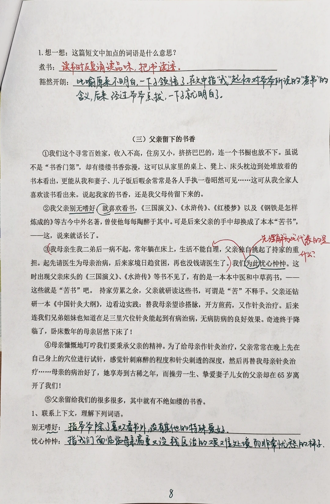 【六上语文】第二单元阅读理解答题模板与练习
