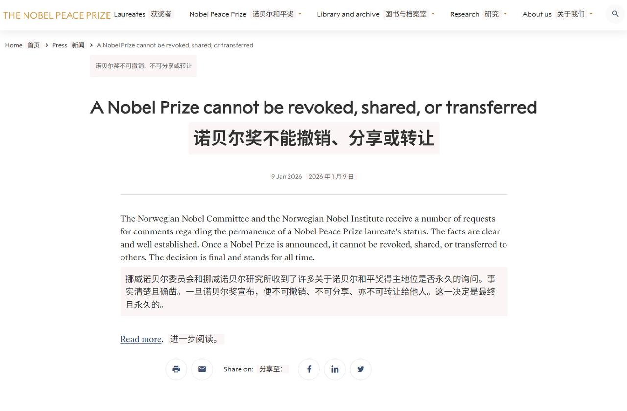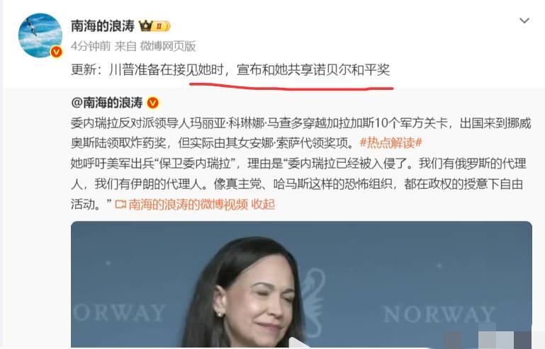 川普心心念念的诺贝尔奖,又失败了。 挪威:一旦诺贝尔奖宣布,便不可撤销、不可分享、亦不可转让给他人。这一决定是最终且永久的。 挪威和川普算是对这奖怼上了。 懂了,不能“撤销、分享、转让”,但可以买卖、强抢、预定。 懂王,这你能忍?三角洲部队出动吧,给他们安上一个贩毒的理由,把这些不识抬举的人给绑了。 不论这奖,这人,这颁奖委员会,都是个笑话。