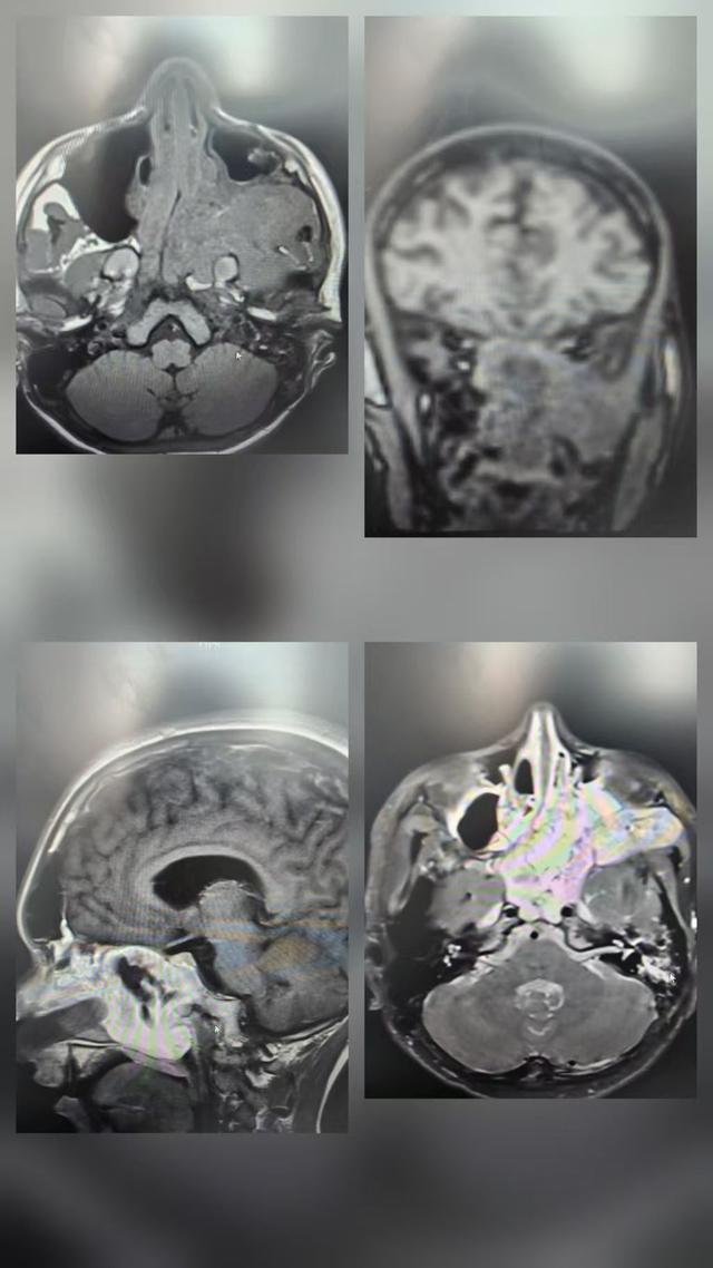 朱学武主任立即实施前鼻孔填塞止血,开具住院证并通过绿色通道紧急收治。患者入院后,主管医生快速完善检查,确诊为“鼻颅底血管瘤伴失血性休克”。