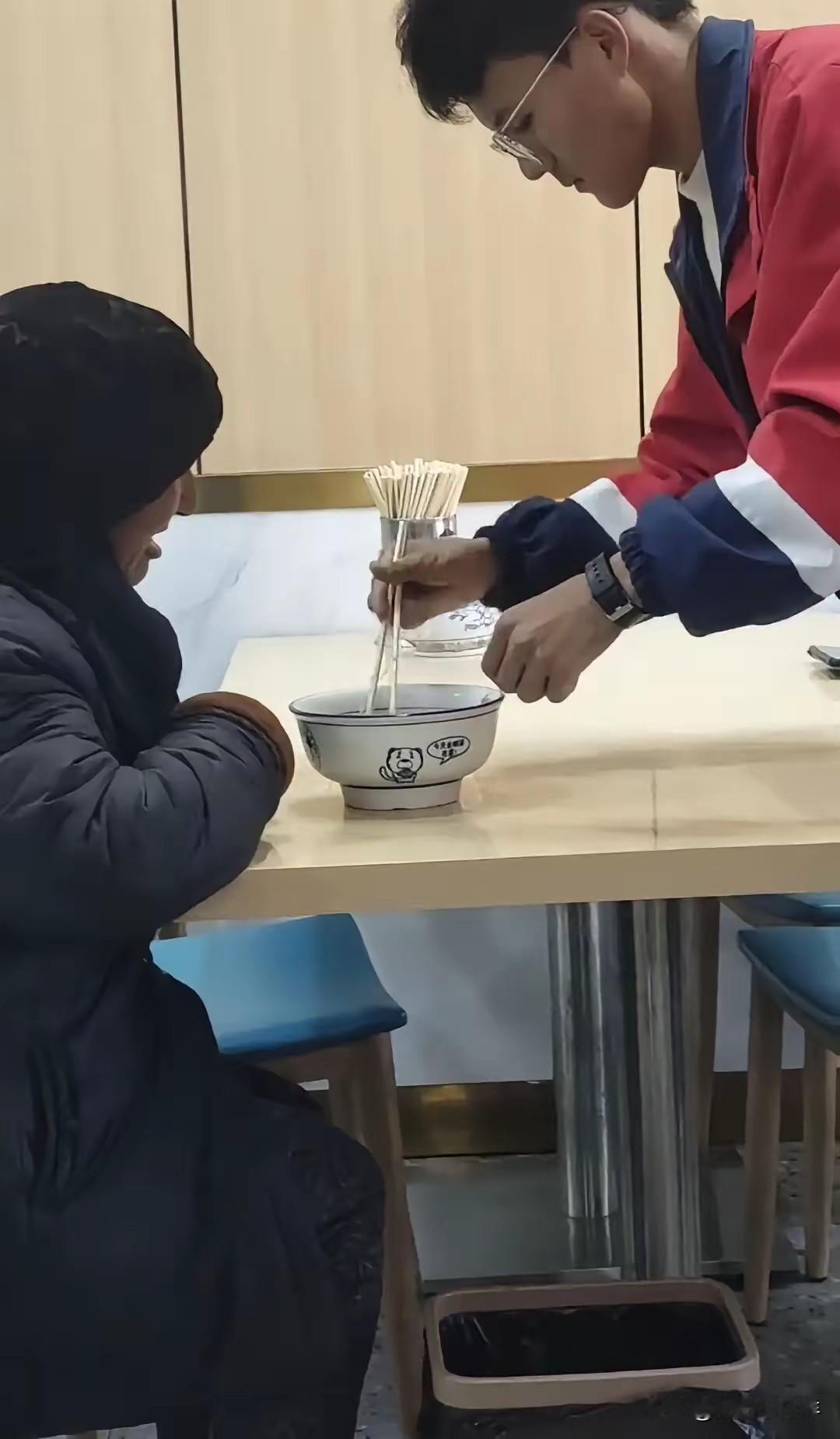 这个男生上辈子一定是个天使!甘肃临夏,一名高中生在面馆吃饭,看到一位老奶奶吃面费劲,主动上前帮忙夹断,而这一幕,刚好在面馆吃面的顾客看到并拍下来发到网上,该男生也火遍了全网 1月10日,面馆顾客马女士将这一幕拍成视频发布,迅速引发关注。视频里,穿红蓝白校服的男生发现老奶奶因牙口不好,对着碗里的拉面无从下口,随即起身走到老人桌前。他拿起筷子,俯身把拉面一根根夹断,动作轻柔,夹完后还特意取了双新筷子递给老人,全程交流不多,却满是细心。老奶奶连连道谢,男生腼腆笑了笑便回到自己座位。 马女士透露,当时面馆内食客不少,只有这个高中生留意到老人的难处。老人因牙口问题无法咬断拉面,只能对着面碗发愁,男生的举动让在场的人都感到暖心。视频传到网上后,网友纷纷称赞这是少年最珍贵的善意,有人直言“这才是青春该有的样子”,也有人调侃“天使果然会穿校服”。 网络上也出现了不同声音。有网友认为这只是件小事,没必要过度渲染,甚至有人质疑视频是摆拍,觉得是为了博流量刻意为之。还有人表示,这种举手之劳的善意本就该是常态,不必因此把孩子捧上神坛。 但客观来看,这件小事恰恰能反映出一个人的本心。生活里,类似的善意时刻其实并不少见,此前就有小学生在菜市场帮卖菜大爷捡菜、整理摊位,大爷要给水果感谢,孩子却摆手跑开。这些孩子的善意没有任何功利心,只是出于本能的共情,这种纯粹的善良,在当下显得尤为难得。 当下社会,很多人习惯了对他人的难处视而不见,“事不关己高高挂起”成了不少人的处事准则。这个临夏高中生的举动,虽只是帮人夹断一碗面,却传递出最朴素的体谅。品德的培养从不是靠空洞的说教,而是藏在这些日常的小事里,孩子的一言一行,恰恰是内心善良的直接体现。 这份善意不仅温暖了老奶奶,也给所有人提了个醒:善良不分大小,哪怕是微不足道的举手之劳,也能为他人带去温暖,这也是社会需要的温度。一个小小的善举,或许就能在别人心里种下一颗善良的种子,慢慢生根发芽。 你在生活中见过哪些少年的暖心善举?又或者自己经历过哪些被陌生人的善意打动的瞬间?可以在评论区分享出来,让这些温暖的时刻被更多人看见。