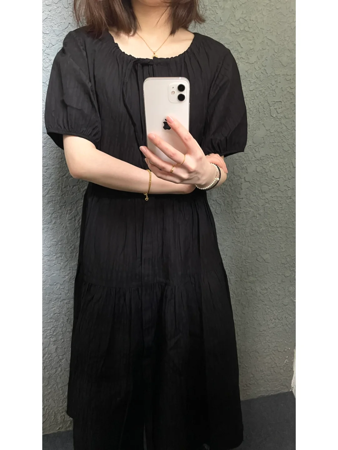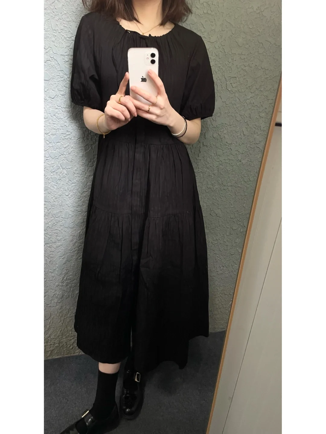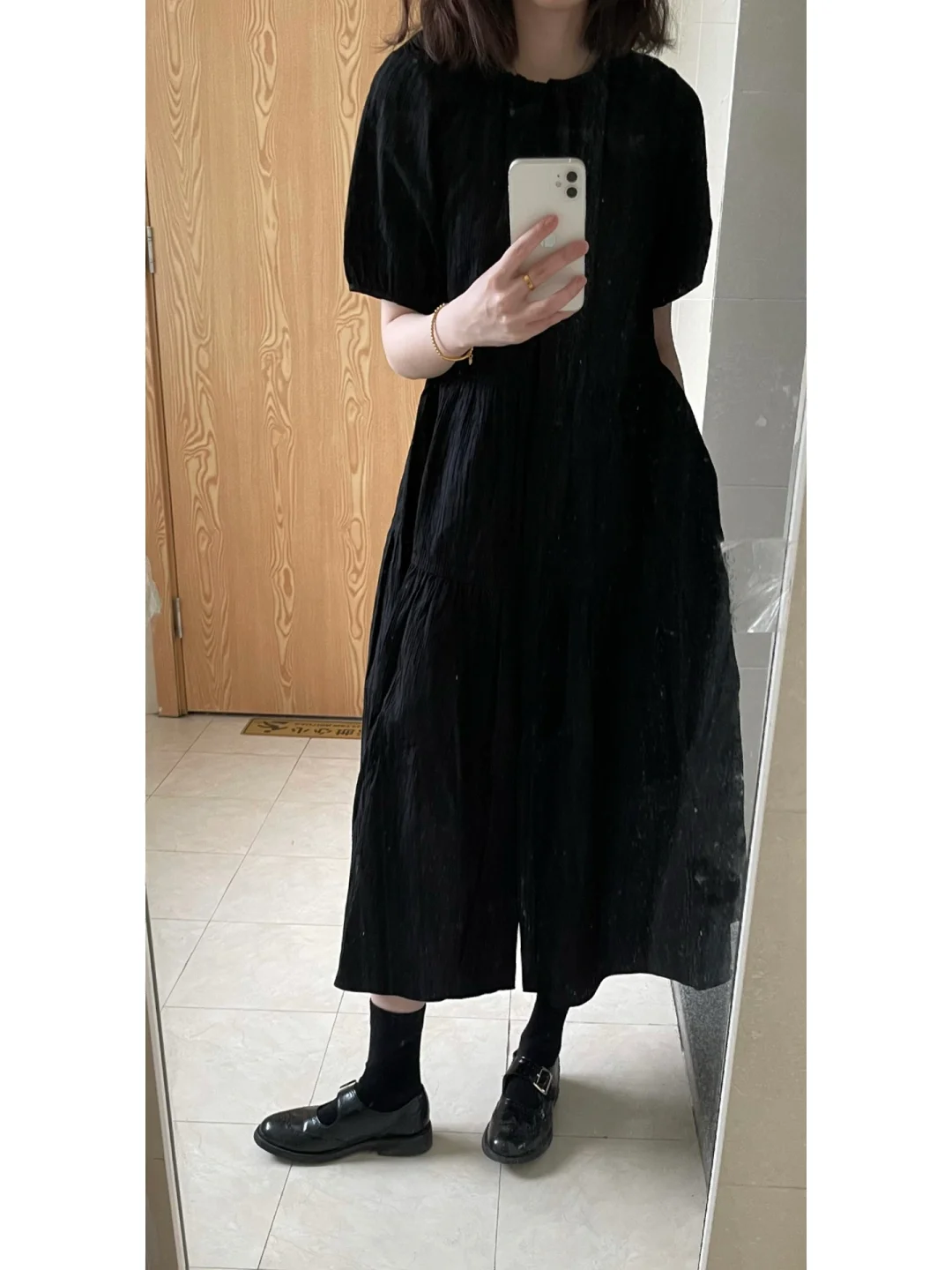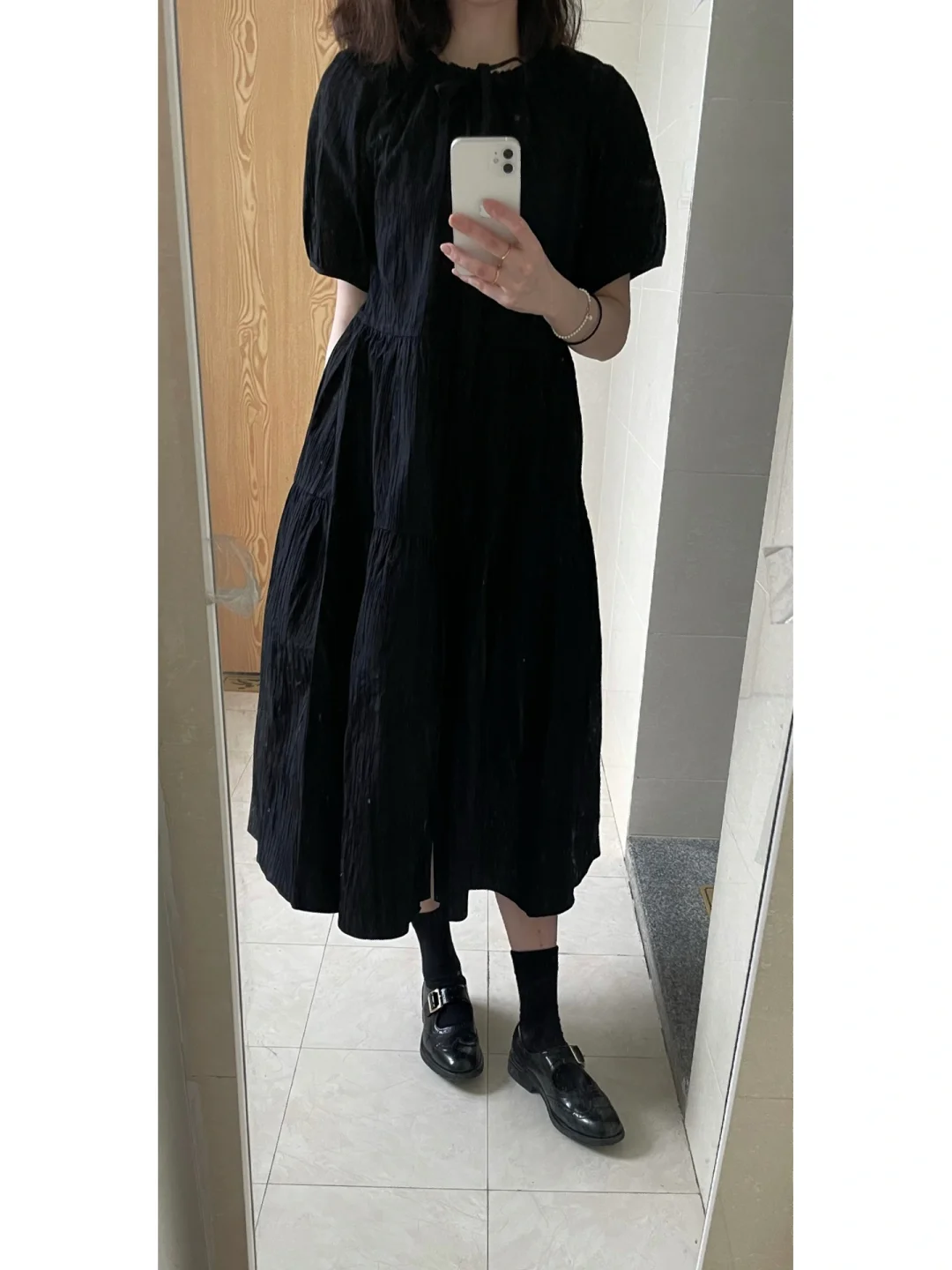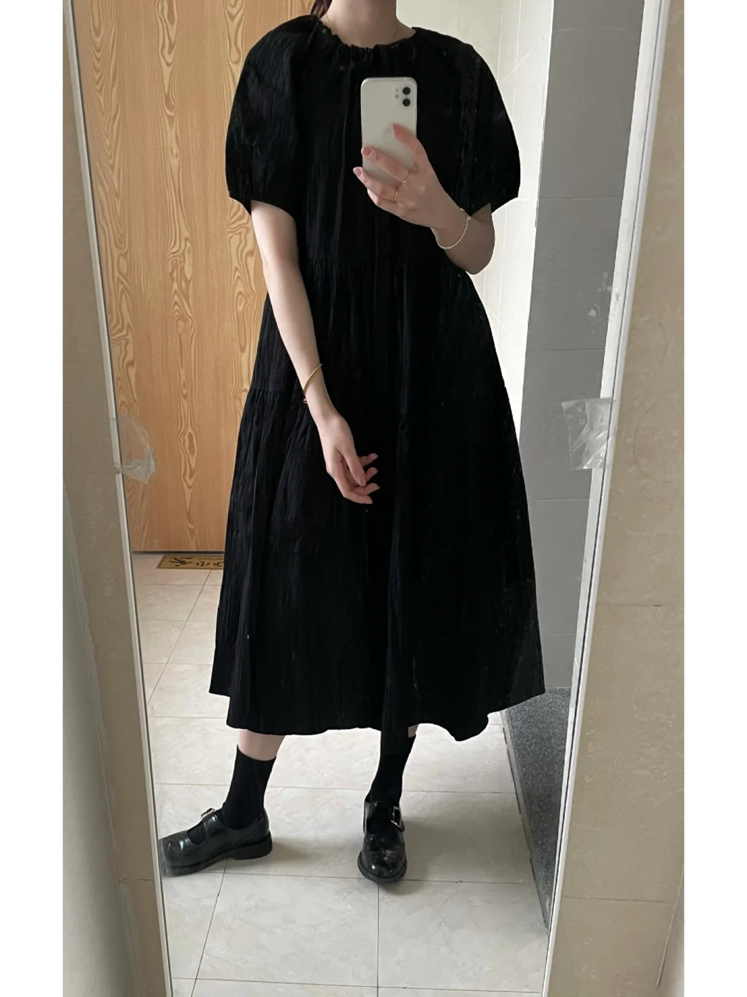 虽然是基础款的黑色长裙 但胜在面料独特有质感 走动时裙摆很蓬松~
