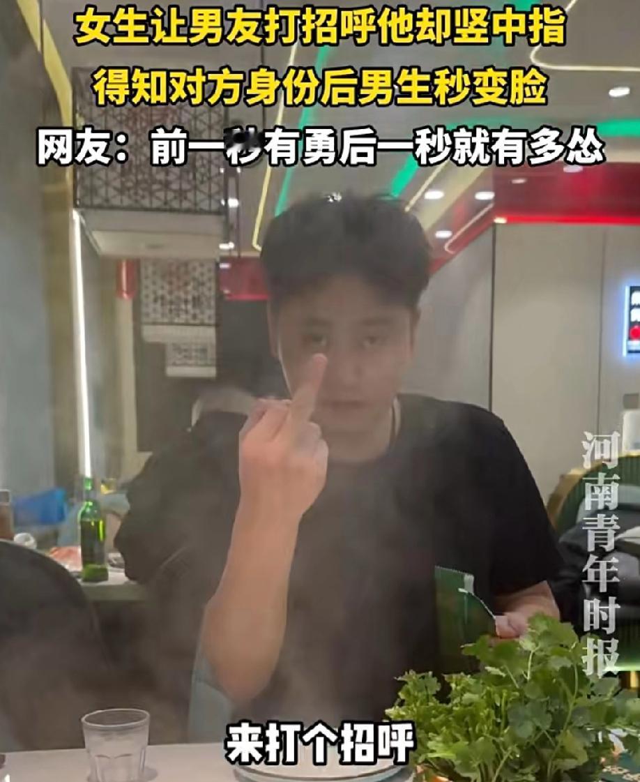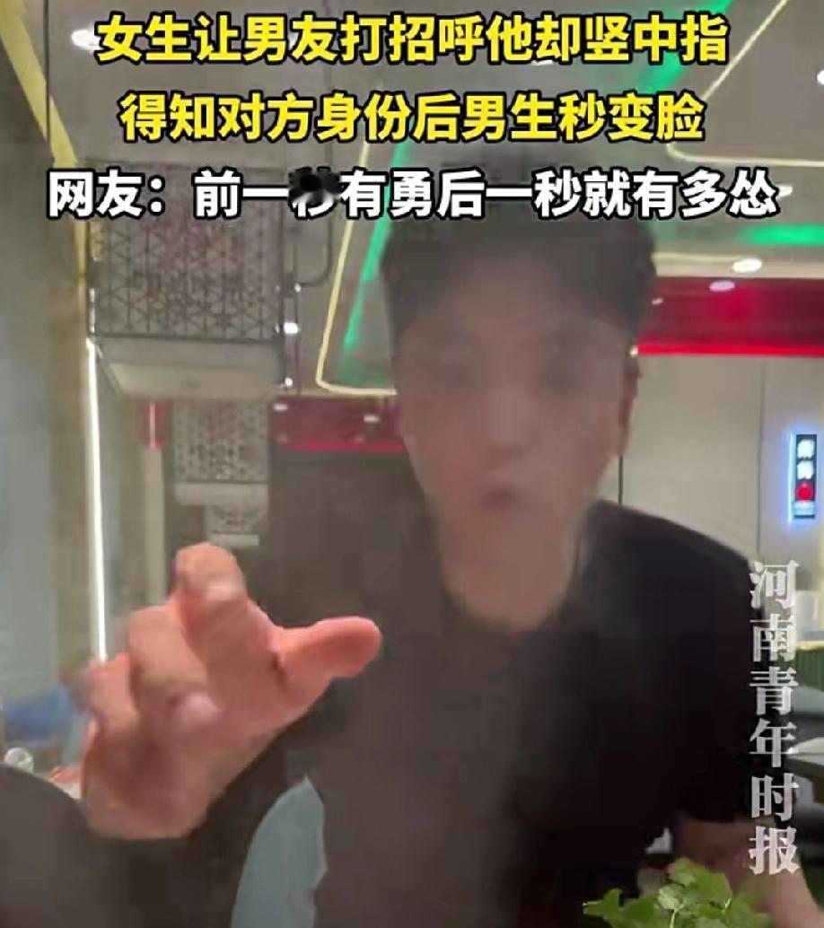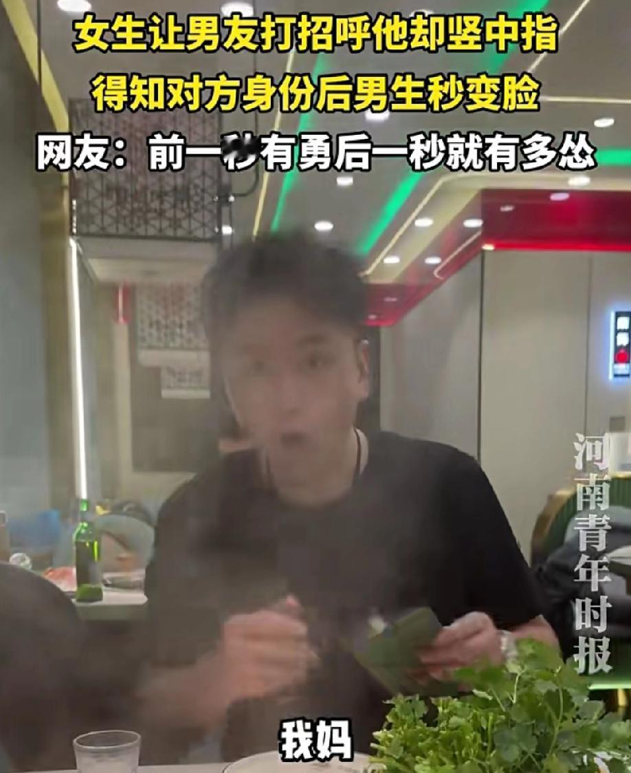 这种男人真是没素质,人品极差! 辽宁,一女生让男友打招呼,他却竖中指,得知对方身份后男生秒变脸! 细节见人品,无论对方是谁,这个手势就是不尊重,看他这流畅动作,可见平时没少用。 当然,不是一家人,不进一家门。很明显看得出来,以前男生出现这种手势的,女生没有阻止甚至默许他这种行为。只是这次对象变成女方的妈妈,才导致男生听到后,破防了想挽救。 很明显男生知道这个手势的意思,这个手势,是他下意识的行为。 一个愿打一个愿挨,希望他们锁死,车流入市场祸害别人!