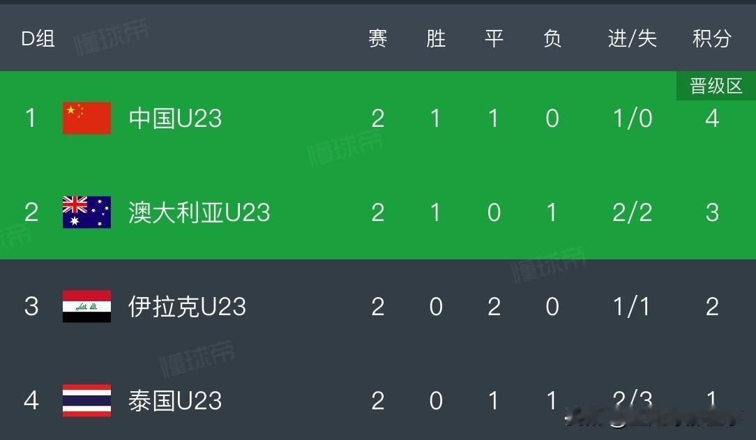 U23亚洲杯中国队1:0澳大利亚创造历史,但最后一战出线形势并非柳暗花明: ✅战胜泰国,拿到史无前例的7分,小组头名出线; ✅打平泰国,拿到史无前例的5分期,不败战绩同样可以晋级; ✅输给泰国,无论澳大利亚胜负与否,中国队都有可能面临淘汰。