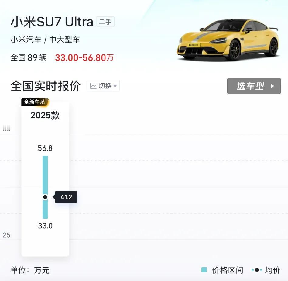 小米二手车价格血崩,雷军坐不住了。前不久还在自豪小米保值率干掉特斯拉,雷军很快被市场打脸。最新二手车行情显示,小米汽车价格开始大面积下滑。比如起售价21.59万的小米SU7,行程2万公里,二手车贬值超过8万,开价只有15万。百公里内的准新车,都得直接贬值2万,此前二手车比新车更贵的神话早已破灭。 贬值率最高的,还得属小米卖的最贵的SU7 ultra,标配价56.8万如今全国二手车均价只有41万,直接跌没15万。而且行程更高,跌价越多。只有开售最晚的YU7贬值率最低,不过准新车也有1万左右折损,没有比新车更高溢价的反常情况。 半年前,雷军还一度为小米汽车排名高居第一的保值率摇旗呐助威,告诉大家特斯拉并非不可战胜,不只是国产同行华为鸿蒙、理想超过特斯拉,小米更是直接拿下第一。只不过如今当小米的产销量迈入平稳阶段后,才更让大家看清的现实。 小米汽车当时的保值率很高,更多的其实是市场出于对小米汽车初期产量不足,由此产生的过高需求所带动的二手市场价格畸高,不是经过市场充分博弈的正常表现。如今小米汽车的产能拉满,市场保有量超过50万辆,早已不再稀缺。这种情况之下所展现的保值率,才勉强算得上正常。