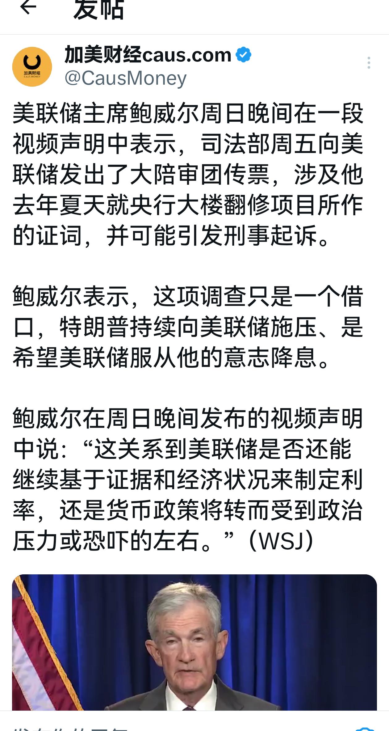 朋友们,央视刚发的消息堪称平地惊雷:美国已对美联储主席鲍威尔启动刑事调查,这直接