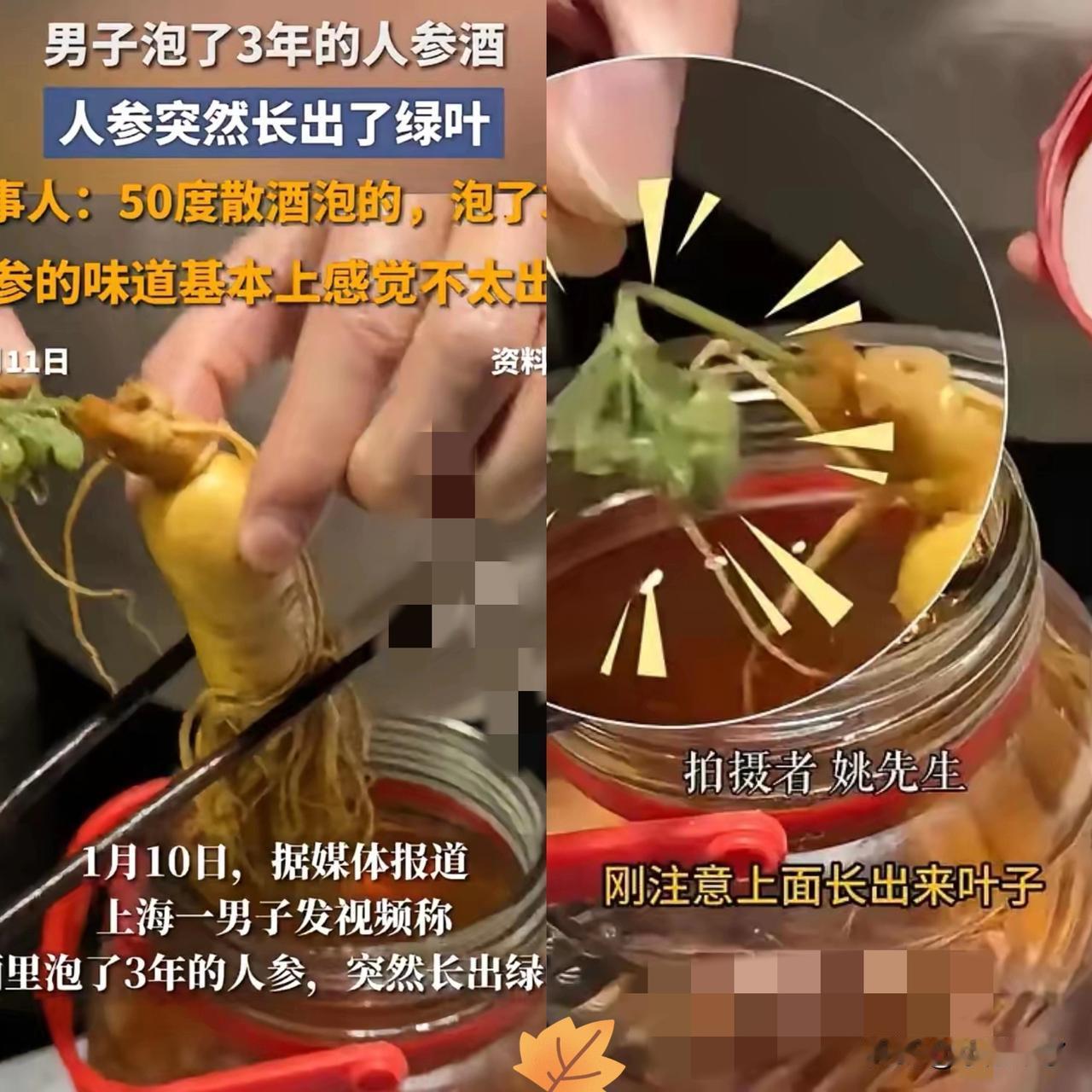 科学都解释不清了!上海,一男子用鹿鞭人参泡酒,最近家里来朋友准备招待一下,结果却发现酒里的人参顶端冒出了鲜嫩绿叶! 别以为是人参“成精”,其实是带芽头的人参没完全丧失活性,加上密封不严、酒精缓慢挥发,凑齐了适宜的生长条件才“复活”! 但这可不是好兆头,酒精度下降+空气渗入,细菌早就有了滋生空间,喝了反而可能伤身! 很多人迷信“高度酒泡得越久越补”,其实大错特错,药酒也有“保鲜期”,密封和储存细节才是重中之重! 该谨慎的时候别图省事,该放弃的时候别心疼!
