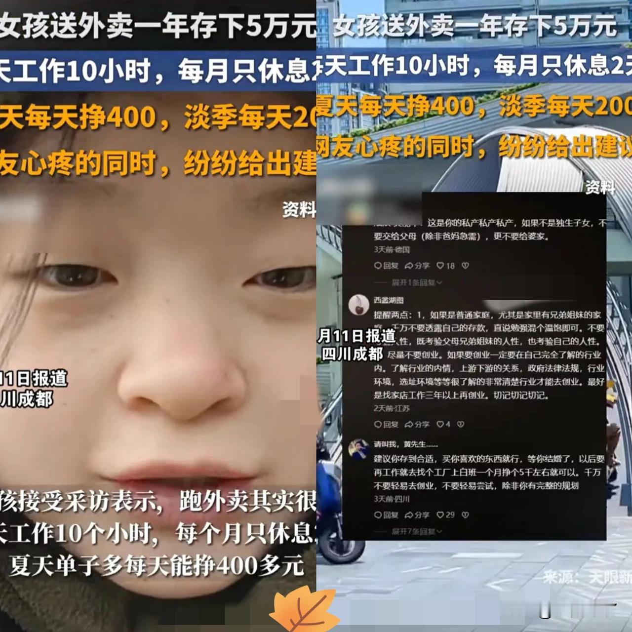 太真实了! 四川成都,一女生在网上分享,自己送外卖送了一年,攒下了50000块钱