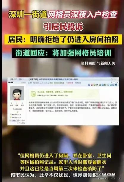 广东深圳,晚上11点多,市民一家人准备休息了,这时网格员却敲响了他们家的门,说要进来消防检查,市民一家人明确拒绝,网格员依然进入市民家,到房间,厕所,卧室到处拍照,市民一家很苦恼。 这已经是第3次了,一周之内3次消防检查,实在是让市民一家感到不堪其扰,特别是这一次,他们真的是又尴尬又气愤。 当时已经是晚上11点多了,孩子第2天还得去上学,他们早早就已经让孩子去睡觉了,晚上11点多的时候,孩子已经进入了甜甜的梦乡。 市民一家也躺在了温暖的大床上,一家人都准备进入梦乡,迎接第2天的新生活。 却在这个时候,他们听到了敲门声,这么晚了,谁还会来做客呢? 可能是邻居家有事找他们,听到敲门声,市民一家也是出来开了门,他们想知道到底是谁这么晚,还来敲门。 他们打开门一看,结果看到了网格员,不用网格员介绍,他们就知道网格员是过来做消防检查的。 当时他们就有些抗拒了,这消防检查,已经检查过两次了,怎么还要来检查。 果然还没有等他们开口,网格员就说了要进来做消防检查。 听到网格员的要求,市民一家很是抗拒,其实已经是晚上11点多了,孩子已经睡得香甜香甜的,一旦让网格员进来,他们就会这里拍照,那里拍照,他们会发出动静打扰孩子的休息。 更让他们一家人尴尬的是,他们一家人穿的都是睡衣,网格员毕竟是外人,在外人面前穿睡衣,他们很是尴尬。 当然他们也不想换衣服出来迎接网格员,这么晚了,他们只想睡觉。 市民考虑到这些,开了门之后并没有让网格员进来,他们明确拒绝了,说夜已深了,不方便让网格员进来做消防检查。 可即使他们作出明确的拒绝,网格员却不听,拿着相机就进市民家。 进来之后也没有静悄悄的,进来就跑到房间,也不顾孩子们在睡觉,就在那里拍照,拍完房间和卧室,他们又到厕所去拍照。 他们就这样,也不顾市民一家人穿着睡衣,他们只管拍照记录,等忙完之后才离开。 看着他们离开的背影,市民一家内心特别不好受,感觉自己的隐私被别人侵犯了。 他们这样的做法实在是太影响他们的生活了,一周三次的消防检查,如果是白天,市民一家也没什么意见,他们居然是在晚上11点多来检查,这真的说不过去。 多少家庭,家里有孩子的都不会这么晚才睡觉,别人睡觉了,还要起床开门,让他们进来做消防检查,他们的工作真的太影响大家的生活了。 并且夜深了,大家都穿着睡衣,这时候有外人进到自己家,真的会让人很不舒服。 对于市民一家遇到的情况,大家都觉得很不可思议,网格员怎么可以大晚上的,跑别人家去做消防检查,真的太影响他人的生活了。 不过也有人理解网格员,他们说网格员可能是白天已经工作了一天,但还没有完成任务,所以才会在晚上继续工作,才会在晚上进入市民家,他们也只不过想早点完成工作,回家休息而已。 但不管怎么说,这么晚到别人家去做消防检查,确实会影响市民的生活,并且也侵犯了市民的隐私。 对此街道办回应道,因为现在是秋冬季节,正是火灾多发的时候,他们也是为了居民的生命财产安全,才会开展敲门入户的行动。 他们敲门入户,不但是消防检查,更是宣传用电知识,防止火灾。 出现深夜入户的情况,他们表示将会加强对网格员的指导和业务培训。 那么网格员深夜敲门入户,有哪些不对的行为? 首先,网格员是深夜来入户做消防检查,市民一家已经明确拒绝他们进来,他们依然进市民家,这行为可以认定为非法侵入他人住宅的行为。 《治安管理处罚法》第40条规定:非法限制他人人身自由、非法侵入他人住宅或者非法搜查他人身体的,处十日以上十五日以下拘留,并处五百元以上一千元以下罚款;情节较轻的,处五日以上十日以下拘留,并处二百元以上五百元以下罚款‌。 只要是市民一家拒绝网格员进他们家,网格员就不能进市民家,否则就是违法行为。 其次,深夜12点多已经是市民休息的时间,他们深夜来做消防检查,这已经是扰民行为,并且市民一家穿的是睡衣,这种情况下,网格员还进到市民家,这就侵犯了市民的隐私。 《治安管理处罚法》第42条第(6)项的规定:偷窥、偷拍、窃听、散布他人隐私的,处5日以下拘留或者500元以下罚款;情节较重的,处5日以上10日以下拘留。 市民有隐私权,只要他们不方便,他们就是可以拒绝网格员进到他们家的。 那么你们对网格员的行为有何看法呢?