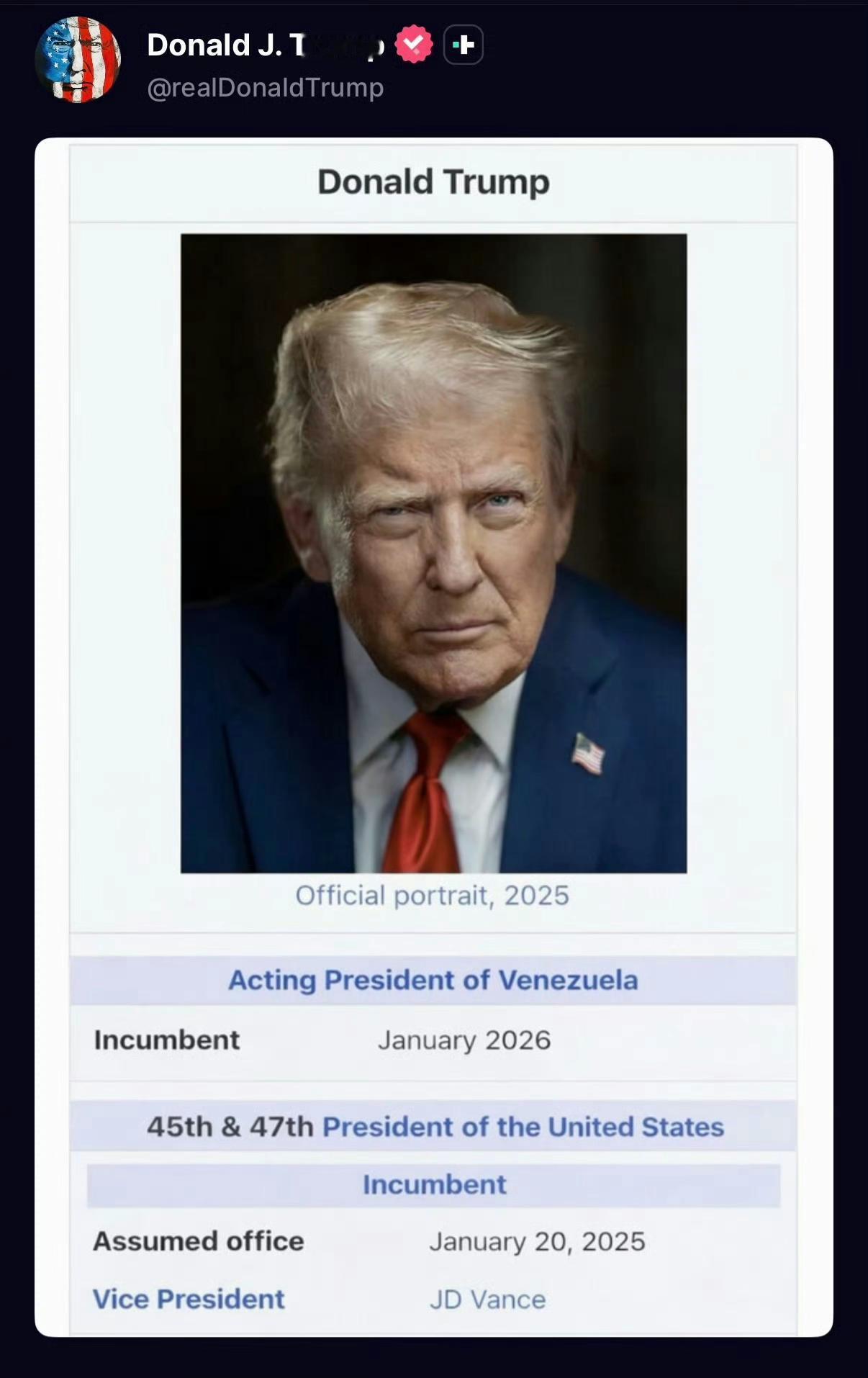 特朗普在真相社交发帖,自称“委内瑞拉代总统”。