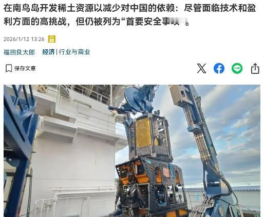 高市早苗政府刚启动稀土计划第一天,就被自己人泼了一盆冷水!1月11日,高市早苗沉默四天之后首次表态,其强硬的表示中国对日本进行管制措施不可接受。高市早苗讲话后的第二天,日本的稀土计划就正式启动了。1月12日,一艘日本研究船从静冈市清水港出发,前往小笠原群岛南鸟岛附近海域勘探含稀土泥矿。   研究船的目的地,是南鸟岛6000米深的海底。2012年,东京大学在这里发现了1600万吨稀土矿,按日本年消费量算,够用200年。   但6000米是什么概念?水压相当于600头大象踩在一平方米上,温度接近冰点,金属设备随时可能被腐蚀断裂。日本曾在2022年试过2500米深度,如今难度翻了不止一倍。   更尴尬的是,这次试采的“成果”少得可怜:计划采集35吨泥浆,每吨只能提炼2公斤稀土,满打满算70公斤,还不够一家中型工厂三天用量。而成本呢?仅管道设备就花了120亿日元,每吨开采成本是中国市场价的数十倍。有日本议员私下嘀咕:“这哪是采矿,分明是往海里扔钱。”   产业链的短板更致命。中国不仅垄断开采,更掌握全球92%的精炼技术。日本就算挖出稀土泥,还得运回本土建精炼厂——从零开始建产业链,至少需要数百亿美元和十年时间。现在日本连稀土分离的核心技术都没突破,去年和法国合作的回收工厂,年产能仅1400吨,连牙缝都不够塞。   高市早苗的算盘打得响:2027年大规模试采,2028年商业化。但眼下的危机等不了——日本企业的稀土库存只剩三个月,新订单审批周期从1个月延长到3个月,部分车企已经开始拆解旧电机“挖稀土”。   日产汽车和早稻田大学合作的回收技术,号称从废电池里提取稀土,可一年最多回收1000吨,杯水车薪。   更讽刺的是,日本一边喊着“去中国化”,一边悄悄加码在华投资。三菱商事、三井物产最近在江西赣州的稀土矿增资扩产,80%的产品直接运回日本。有业内人士苦笑:“嘴上说不要,身体很诚实。”   高市早苗指望拉盟友撑腰,结果碰了一鼻子灰。美国忙着南美事务,欧洲陷在格陵兰领土争端,七国集团连个联合声明都发不出来。   去年和特朗普签的“稀土合作协议”,至今只见纸面承诺,美国稀土精炼仍离不开中国。澳大利亚倒是答应供应重稀土,但2019年美澳联合开采的项目,拖了七年都没投产——深海采矿的技术门槛,远超想象。   环保组织的反对声也越来越大。南鸟岛海域是深海生物的“诺亚方舟”,开采可能永久破坏生态。国际海底管理局的开采规范尚未出台,日本的“全球首例”,更像是一场没有规则的豪赌。   在日本街头,聊起深海稀土计划,出租车司机佐藤大叔直摇头:“政府说200年够用,可我孙子都不一定看得见。现在工厂没稀土停工,谁来赔我们工资?”这种焦虑,在静冈县尤为明显——研究船启航当天,港口外聚集了几十名渔民,举着“保护海洋”的牌子抗议。他们担心,海底采矿搅浑海水,渔场毁了,子孙饭碗没了。   当研究船的钻井架没入太平洋时,高市早苗的稀土计划,本质上是一场赌局:赌技术突破,赌成本下降,赌中国松口。   但现实是,中国的稀土管制有理有据(《出口管制法》和国际防扩散规则),而日本的“自救”更像应激反应——2010年中日撞船事件后,日本也曾喊过“摆脱稀土依赖”,结果十年后依赖度反而从60%升到70%。   深海里的稀土泥,或许能给日本一点希望,但浇不灭眼前的烈火。高市早苗若真为日本好,该做的不是喊“不可接受”,而是回到谈判桌前,承认台海红线碰不得。毕竟,6000米的深海压力,远比不上一个国家战略误判的代价。