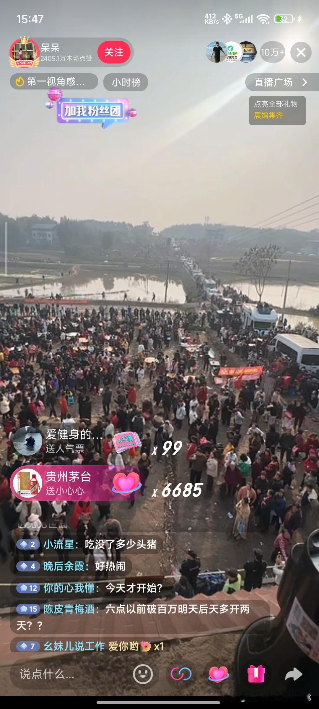 呆呆的杀猪饭移动来救场了! 直接把乡村变成了流量现场!上万人从各地涌到合川的村口,田埂上挤得水泄不通,百来个主播架着设备扎堆直播,现场热闹得跟赶大集似的,连准备的杀猪饭都被一抢而空。更有意思的是,因为人太多导致网络扛不住,合川移动直接拉来应急通信车救场,硬核接住了这波汹涌的流量,成了这场热闹里的“神助攻”。 呆呆妹也靠着这场意外的狂欢两天涨粉超百万,直播间点赞数飙到两千多万,评论区全是网友调侃“这哪里是吃杀猪饭,简直是办乡村网红节”。可这场全民狂欢的背后,有人看到了普通人的流量奇迹,也有人觉得是一场刻意的流量炒作。你觉得这种乡村流量狂欢,是真实的情感共鸣,还是网红们的一场集体作秀?