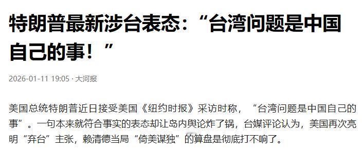 真理在大炮的射程之内!中国军事越强大,美国越不敢惹毛中国!就在1月11日,美国再次向台独当局和全世界表明:“放弃台湾”的主张! 熟悉国际局势的人都清楚,美国在台海问题上向来喜欢玩两面派把戏,一边嘴上喊着“维持现状”,一边暗地里给台独当局输送武器。2025年12月,美国国务院还批准了111亿美元的对台军售,把海马斯火箭炮、自行榴弹炮这些进攻性武器一股脑往台湾塞,试图用军售搅乱台海局势。 可咱们解放军也没惯着,立马展开了正义使命-2025军演,从封锁演练到实弹打击,东部战区的动作干脆利落,用实际行动告诉美国和台独势力,中国捍卫领土完整的决心不容挑衅。 短短一个多月后,美国就改口表明“放弃台湾”的主张,这前后态度的转变,说到底还是咱们的硬实力让他们认清了现实。 美国之所以不敢在台海问题上继续硬刚,核心还是因为他们在台海方向以及整个南海的军事力量,已经根本无法对抗解放军了。 之前西太平洋曾出现过中美四艘航母对峙的局面,咱们的辽宁舰编队南下西太平洋,山东舰在南海北部开展高强度训练,形成南北夹击的战略牵制;美军则派出华盛顿号和尼米兹号航母分别在日本周边和南海南部活动。 可别小看这种对峙,这其实就是台海冲突的预演,而五角大楼的兵棋推演早就给出了结果,美军航母在台海冲突中胜少败多,大概率会被“各个击破”。咱们有主场优势,南海的三大岛礁让美军航母的隐蔽优势无从发挥,东风-21D反舰弹道导弹射程覆盖南海,高超音速弹头能轻松突破美军防空网,被称为“航母杀手”。在西太平洋,辽宁舰还能得到歼-20隐形战机和轰-6K轰炸机的支援,形成多维打击体系。 反观美军,他们的后勤补给依赖关岛和日本基地,这些基地全在咱们火箭军的打击范围内,一旦开战根本没法持续作战。现在的美国心里跟明镜似的,仅凭一两艘航母就能拿捏中国的时代早就过去了,真要动手纯属自讨苦吃。 更关键的是,美国一旦武力介入台海作战,必将失去现在全球霸主的地位。2025年12月23日五角大楼的报告就明确指出,介入台海的成本远高于收益,损失会超出预期。美国现在的全球布局本就捉襟见肘,一边要在欧洲应对局势,一边还要在中东维持影响力,能调动的军事资源十分有限。 如果陷入台海冲突,美国不仅要投入大量兵力和装备,还会遭到咱们的反制,全球供应链都会受到冲击。要知道,2026年初中国刚完成800万吨大豆采购,剩下400万吨也将在2月底前交货,这1200万吨的订单可是美国中西部农业州的选票命脉,爱荷华、内布拉斯加这些特朗普的铁票仓全靠这笔买卖活着。 美国要是真敢在台海动武,经济上的损失根本承受不起,霸主地位自然也就岌岌可危。说白了,不惹毛中国,美国还能勉强维持全球霸主的架子,一旦被拖进台海战争,只会落得个竹篮打水一场空的下场,这种亏本买卖,精于算计的美国可不会做。 除此之外,美国军事力量现在重点放在自己的家门口,也没多余精力管台海的闲事。最近美国在加勒比海部署了约1.5万人的军队,这可是几十年来美军在该地区规模最大的一次军事部署。此次部署的兵力包括福特号航母打击群、硫磺岛号两栖戒备群,还有30架F-22、F-35A等隐形战斗机,以及各类电子战飞机和无人机。 要知道,美军负责拉丁美洲及加勒比海地区的南方司令部,平时只有约1200名军事与文职人员,这次大规模增兵,意味着美军兵力正在向西半球转移。根据美国新版《国家安全战略报告》,特朗普的国防政策已经开始由东向西过渡,西半球成了美国的“优先战区”。 连自家后院都忙得不可开交,美军自然没法再抽调足够兵力介入台海,毕竟兵力就那么多,顾此失彼的道理美国还是懂的。 其实美国这次表明“放弃台湾”的主张,本质上就是实力对比变化后的必然选择。以前美国仗着军事优势,在全球到处搞事情,可现在中国的军事力量越来越强,军费近双倍于2013年,AI情报、网络渗透等技术也不断突破,已经有足够的能力捍卫国家主权和领土完整。 特朗普的表态也透着一股交易味,他之前就说过大陆视台湾为中国一部分,怎么办是中方自由,还暗示利益够就卖台,现在继续军售却不送货,就是想把台湾当局当提款机,却不愿亲自下场。 这也再次印证了“真理在大炮的射程之内”的道理,中国军事越强大,美国就越不敢惹毛中国。不管美国是真心放弃台湾,还是迫于压力的权宜之计,都改变不了台湾是中国一部分的事实,也动摇不了中国实现统一的决心。 那些还抱着“倚美谋独”幻想的台独分子,也该醒醒了,美国连自己的利益都顾不过来,根本不可能成为他们的靠山。未来只要咱们继续提升硬实力,任何企图分裂国家的行为,都会遭到沉重打击。