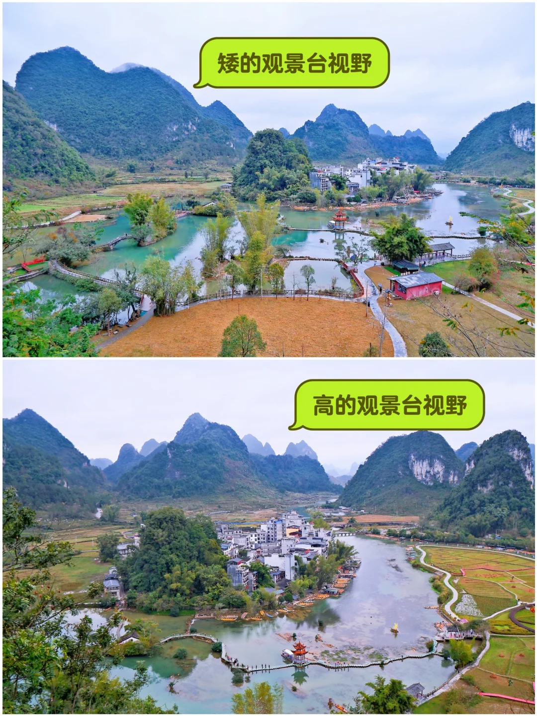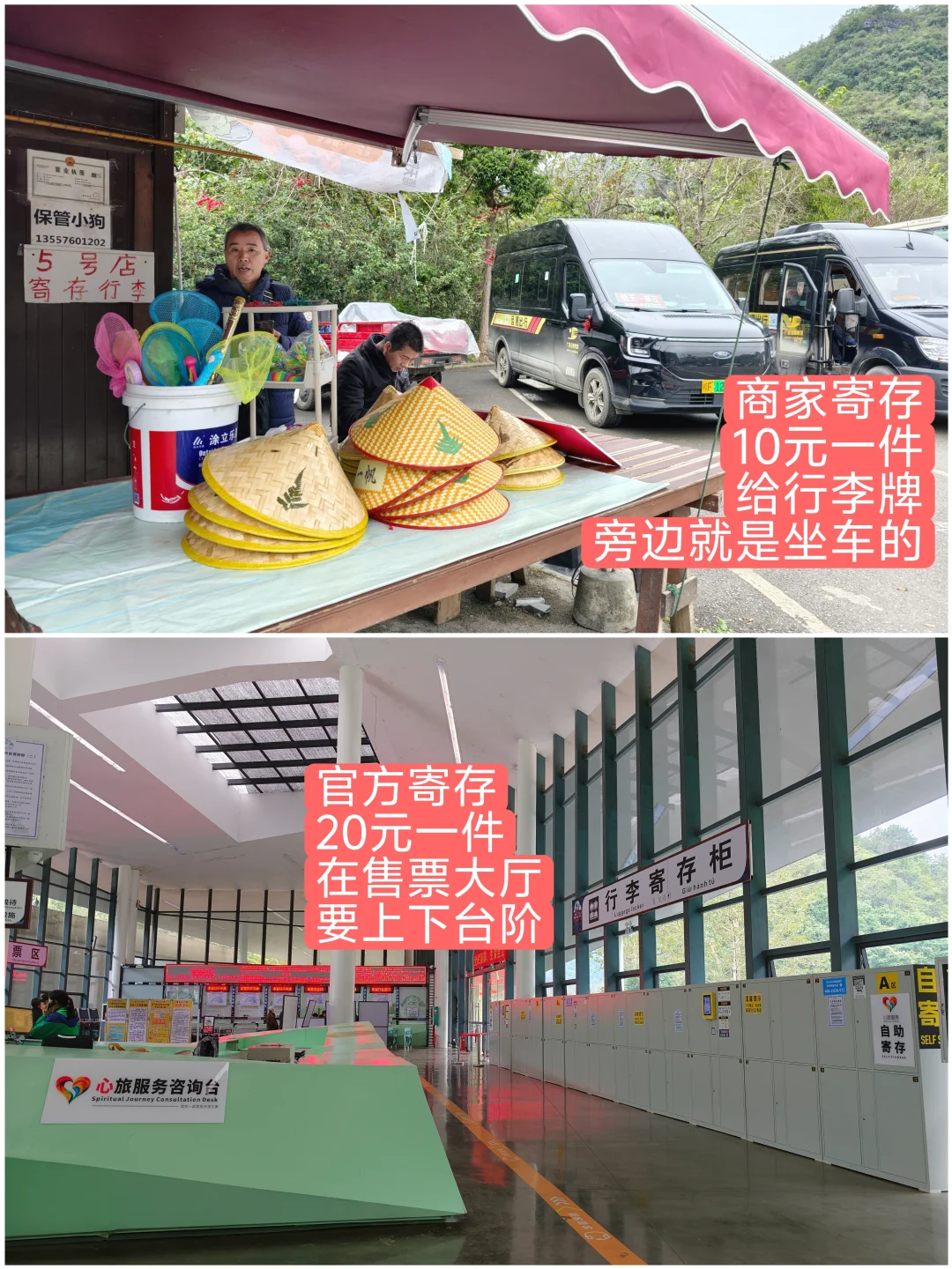 靖西去德天瀑布明明比崇左更近,又能串联古龙山、通灵大峡谷,一日游妥妥的——就因为跨了地级市,愣是没有公共交通[生气R][生气R] 以下信息来自1.4实测,很多都是网上查不到、去了才发现的,建议❤️收藏 ———— ✅️靖西交通 [一R]【靖西火车站】出来就有公交车去市区,可以到【靖宇客运中心】,3元/人,发车点衔接火车到达,出站坐上就走。 [二R]【靖宇客运中心】大部分车都不在站内,直接停站外【新生街】,去旧州、古龙山大峡谷+通灵大峡谷、渠洋湖都有车——⚠️关注【驰程出行】查询。 [三R]去鹅泉的车目前已经停了,滴滴打车大概15元、比较好叫。 [四R]靖西去德天瀑布没有车,到龙州的车每天13:00一班,经过硕龙镇(离瀑布3km,但现在因为修高速、只能到国道口、下车点不太好打车); [五R]去通灵大峡谷的车终点站是湖润镇,到德天瀑布还有20多公里,可以从这儿找车。 [六R]实测从靖西到德天瀑布用顺风车软件叫到了私车,100元,停三叠泉(但这个是淡季价,普遍说是要150元)。 —— ✅️靖西景点干货 📍旧州古镇 敢收50门票完全就是失心疯!真正有看头的就文昌阁,绣球也不太好看。 网上说从旧州小学走进去能逃票,没有试。我那天可能因为下雨,正门和文昌阁二次检票的地方都没人,直接就走进去了。 📍鹅泉 又一个收50的失心疯! ⚠️8:00前、18:00点后从东门免费进(4-10月时间不同,具体看📸图9) 推荐住旁边,早晚各进一次。 两个观景台,低的3分钟上去,高的要继续再爬20分钟(原路下),视野区别看📸图10。 📍其它 渠洋湖天气太差放弃了,锦绣古镇完全是商业街还萧条。 —— ✅️德天瀑布干货 [一R]大部分人推荐的小程序【趣边关】其实车辆是私人运营,淡季可能停发。 [二R]推荐【运德出行】(📸图15),崇左汽车站运营,固定班次,有群直接联系司机。 [三R]蓝洞咖啡离德天瀑布游客中心还有1km。 [四R]寄存行李不用进游客中心,贵、且要上下台阶,停车场右边大巴停靠处旁的商铺就可以存,10元/件。 [五R]游客中心到瀑布位置坐车还要20分钟,下车后跟景区游览线路走就好,是一个环形,快1.5h,慢3h。 [六R]稻田咖啡一定上去,有两个免费打卡位很不错。 [六R]跨国风情街就别去了,大鼓广场上去直接右转走回去就行。 [七R]返程有接驳车10元不推荐,会错过几个观景台,实际走也就7、800米。