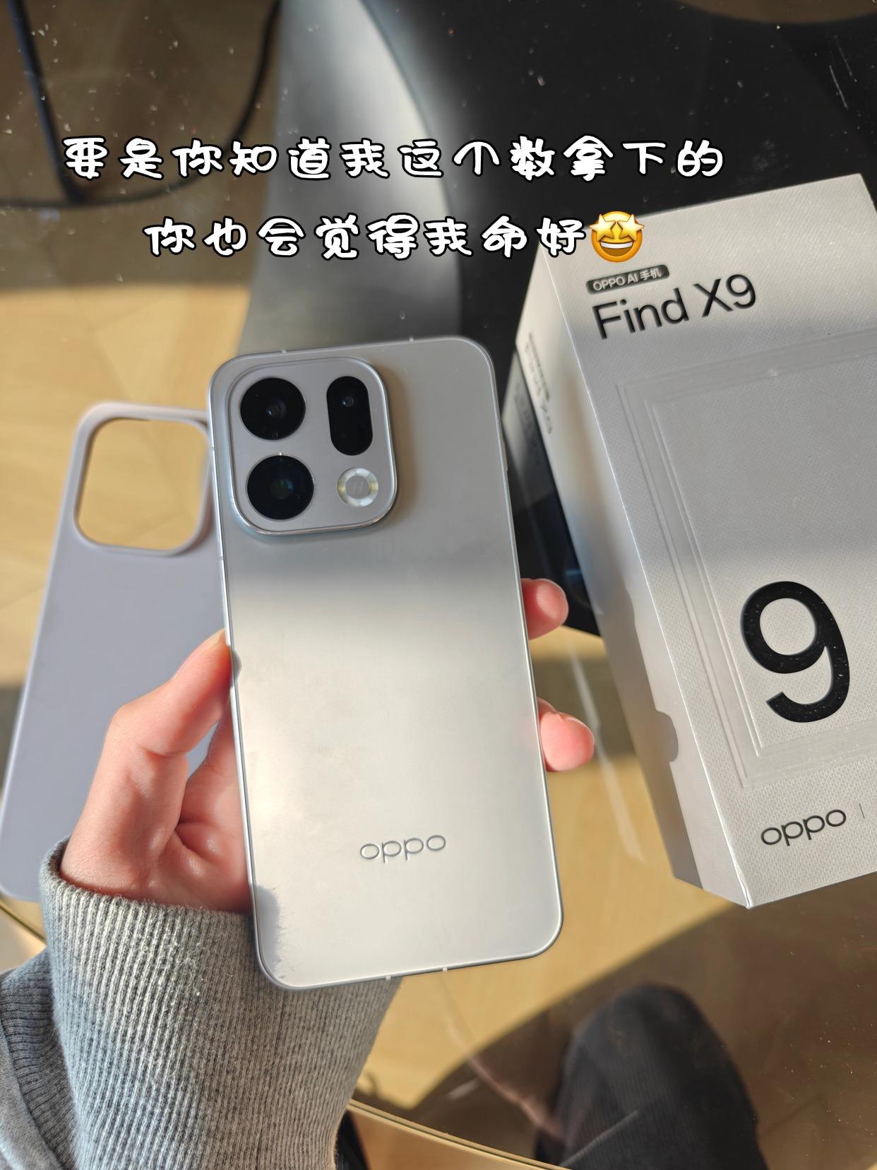 给老己的新年礼!现在买Find X9太爽了吧 等了好久终于等到今天!我很早之前就想换手机了,看了iPhone17但觉得没长焦,外出拍照不行,最后选了OPPO Find X9钛色,国补还能叠加新年限时优惠券减200,256g只要3699,还送礼盒,24期免xi,手机壳还是材质不错的硅胶壳,又省了,X9 Pro是4599起,价也不错。 - 由于我之前基本只用iPhone,所以换到Find X9还是有不少不一样的地方,首先是信号、电池和充电确实快,如果一天不玩很多游戏,7025mah电池能用一天多,充电宝我都放抽屉了。 - 哈苏+丹霞色彩还原镜头的拍照也不错,拍风景还是人像,色彩很自然还有种相机质感,4K live确实比一般live清晰,而且出圈实况拼图很有创意,把之前圣诞节拍的拼一下,哈哈挺有趣的。 - 春节 过年OPPOFindX9 新手机 我的手机 手机开箱 手机分享 OPPO 爱你老己 国补