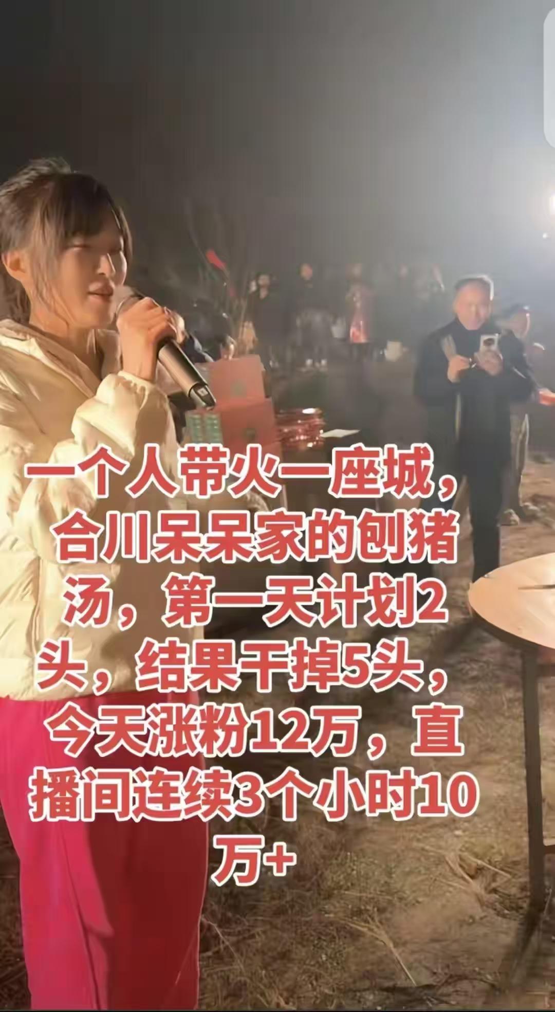 合川文旅应该抓住机会,大力宣传,刨猪汤是一大特色,扶持起一个本地网红,推动当地旅游项目。 政府应该限制那些网红主播的不良引导,限制流量赚平台回报的不良倾向。有些人为了流量不择手段,没有社会底线。如果不管理,将来会更乱。 按猪、洗菜、切肉、烧火、端菜、洗碗,用得了3000人吗?有这么多工具吗?就像自己在家聚会一样,几个人做饭,几个人打牌,几个人摆龙阵,大家都自愿,大家都快乐,不好吗?自愿去参加,就不要太计较多比较。 体力劳动你比不上机器,一技之长也比不上机器人,以后就是会玩才能赢! 现在互联网几大害:游戏,脑残小短剧,直播。 我们老家都是200块钱包杀好剃毛开边,如果只杀死就只要100块钱。