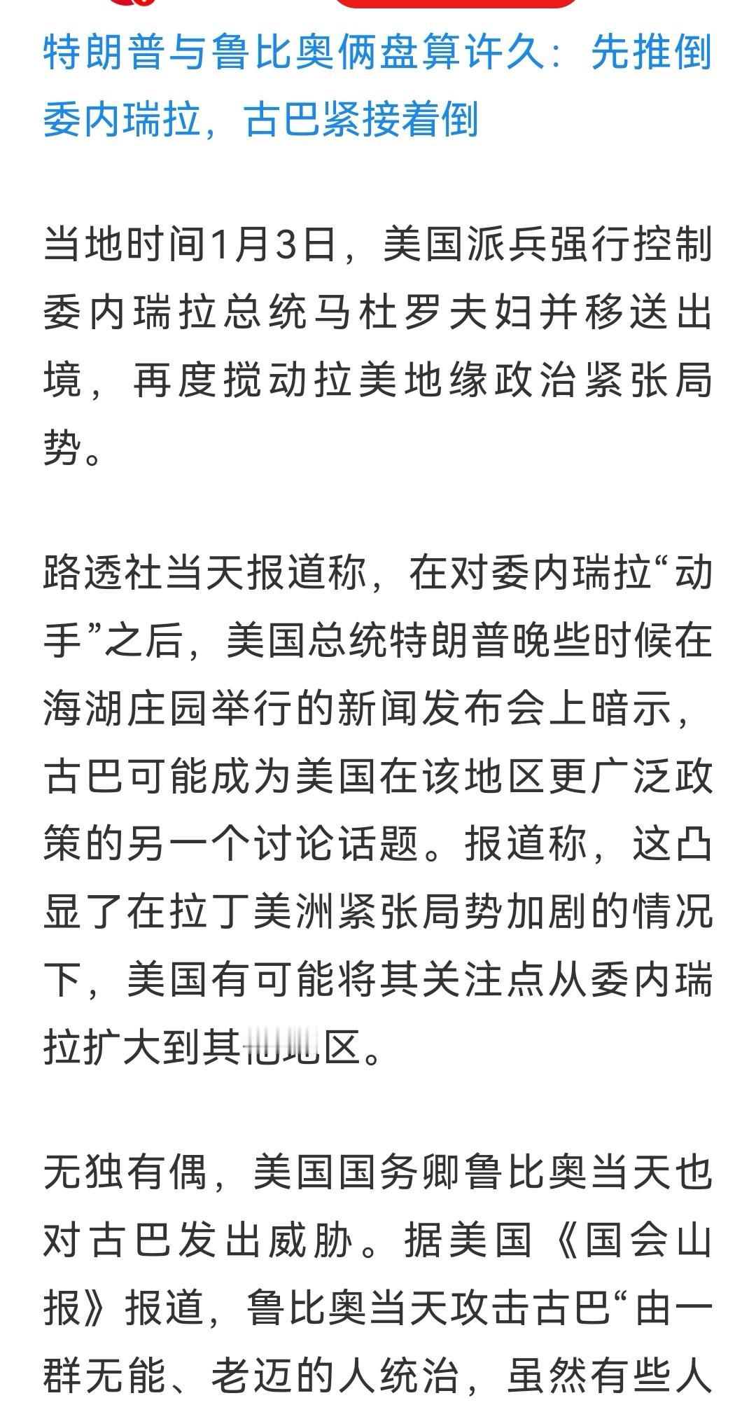 古巴危险了!谁来拯救古巴?卢比奥就是古巴人,这算不算一个古奸?
