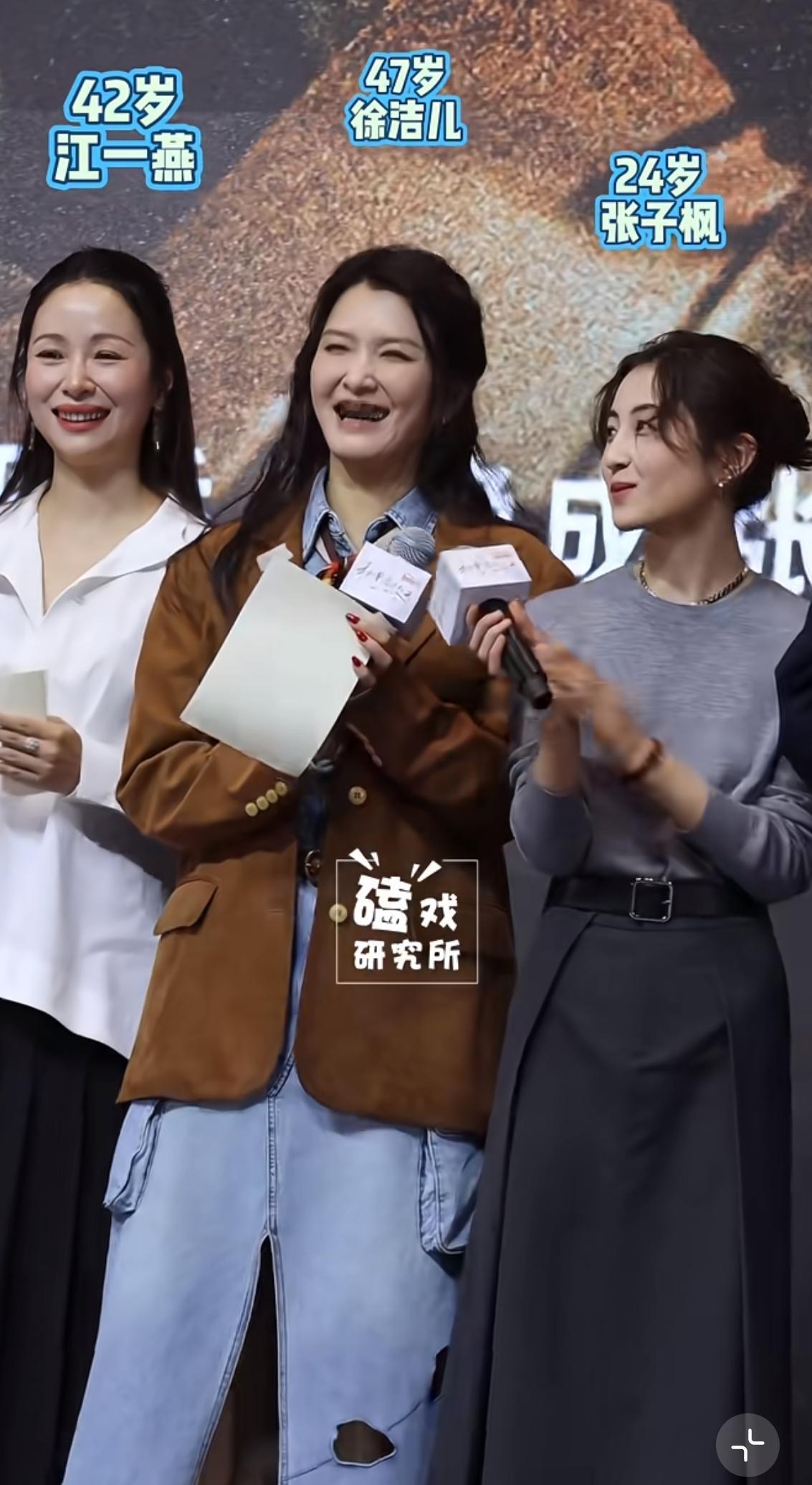 没有对比就没有伤害。 最近电视剧《秋雪漫过的冬天》,剧组成员官宣活动。 三位女主演站在一起,最大的赢家既不是年龄最小的张子枫、也不是江一燕、而是已经47岁的徐洁儿。 从图片上来看,江一燕确实看起来非常的饱满。但也正是太过于饱满了,反而有些失真。而且江一燕的法令纹特别的重,眉毛走向向下。虽然在笑,却总有一种哭相,也许不好的婚姻消耗人了她。 张子枫最年轻,再加上她骨架小。还是挺有都市少女的气息的。 但是最好看的还是徐洁儿。她的脸非常的真实,灵动,自然。眉毛弯弯,笑容非常的舒展。站在三个人之间,她反而成了最有感染力的那位,你的目光情不自禁就会被他吸引。 没有对比就没有伤害,大家说这三位女明星。状态最好的是不是徐洁儿呢?