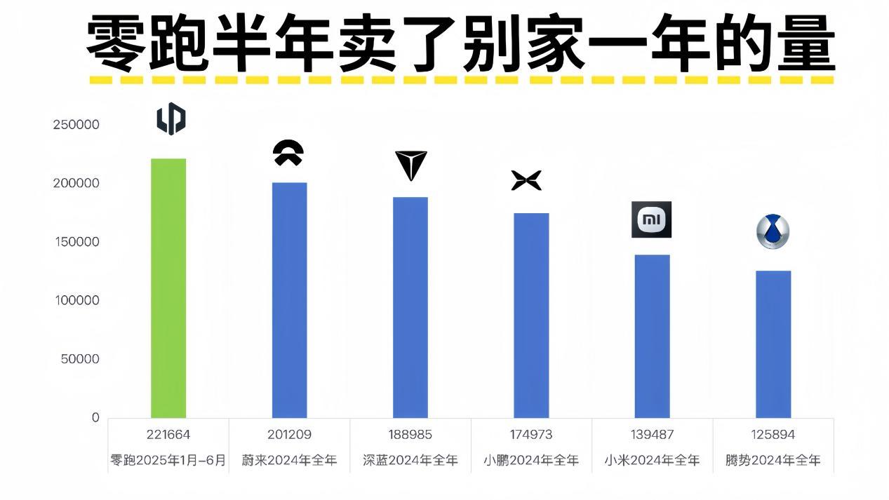 25年新势力竞争,零跑能否拿下最终第一? 去年开始,新势力的格局就开始发生巨大变化,鸿蒙智行突飞猛进,一时间与理想汽车争的头破血流。但是谁曾想,进入2025年之后,形式陡然生变,华为系热度退去,理想后继乏力,反倒是零跑汽车脱颖而出。 6月份,零跑汽车交付48006台新车,以显著优势领跑整个新势力月销榜单。另一家超4万的问界,而理想、小鹏、深蓝、小米等新势力品牌都未触及4万的门槛。这还没完,从今年上半年的统计数据来看,零跑汽车1~6月累计交付了221664台,同样是力压理想、小鹏、小米等品牌,甚至于,零跑半年的销量已经超过了蔚来、小鹏等新势力去年一年的销量了。 而且,我认为零跑下半年的形势还会更好,因为零跑的多款新车不是在热卖就是在排队上市当中,比如全新C10上个月订单达到1.5万、B10交付超过1.4万,本月全新C11、B01都要陆续上市,势必会成为零跑销量新的增长极,看来今年下半年,如果哪家新势力想冲击零跑第一位置的话,恐怕并不容易。