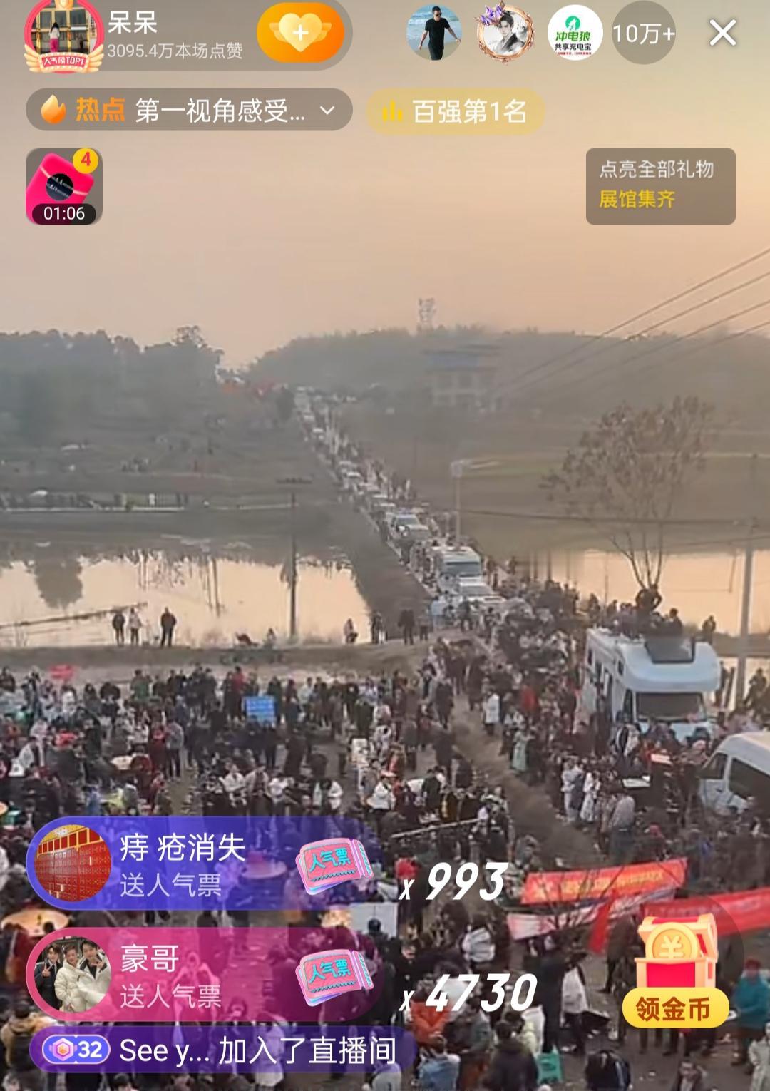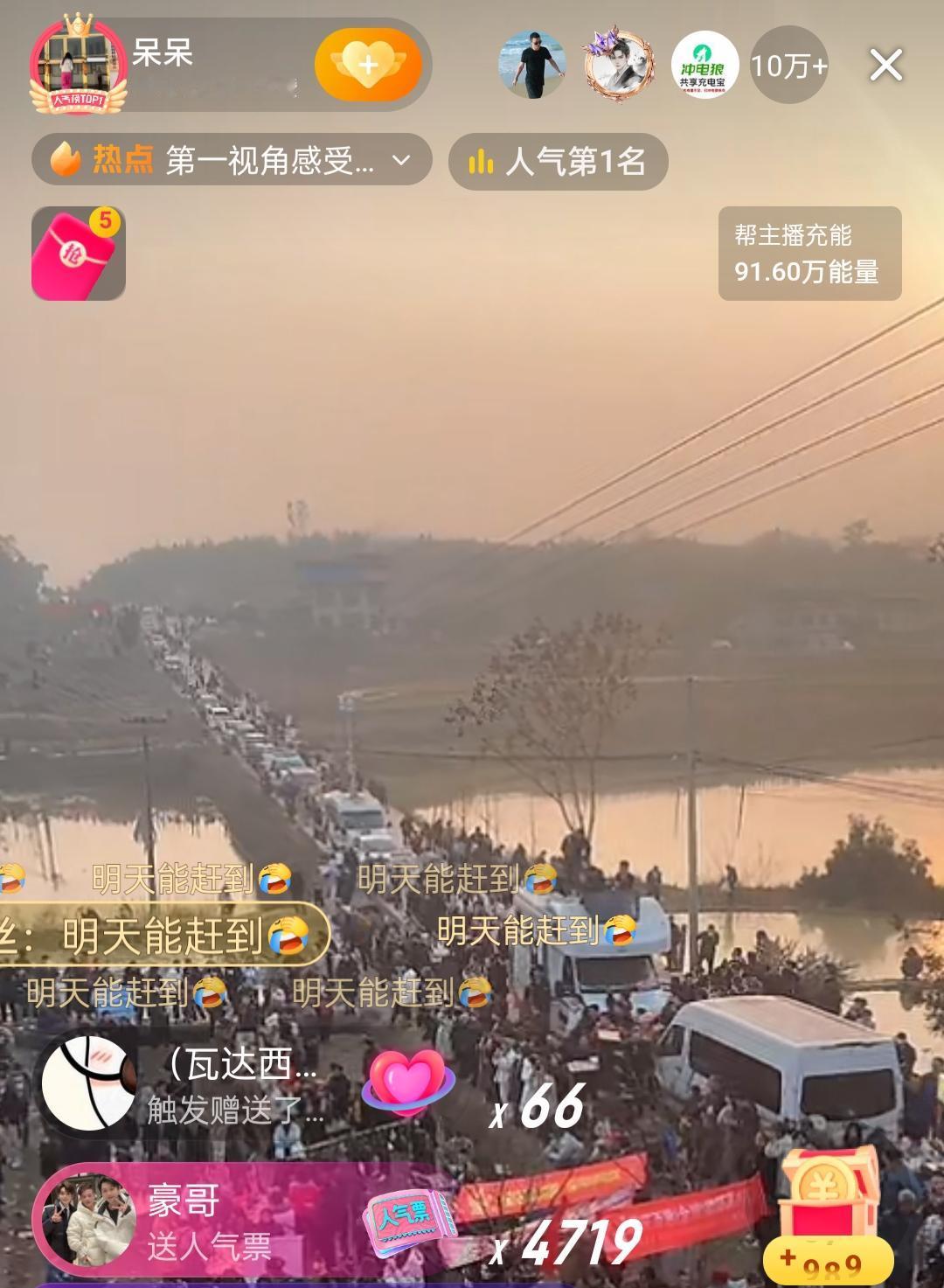 网络主播呆呆, 发出了江湖按猪令, 广大网友, 为了寻找曾经的快乐——按猪腿, 为了寻找记忆中的美食——刨猪汤, 不远万里都在向重庆合川呆呆家集合, 重庆合川的呆呆彻底火了, 线下三千人聚集到他家, 去给她家按猪腿, 去吃口她家的刨猪汤, 线上直播间人数突破10万+, 一度把直播间干成了, 人气榜第一,百强榜第一, 三天,仅仅三天, 她的直播间就点亮全部的礼物! 三天,仅仅三天, 她就把粉丝干到了159万+ , 中国人爱热闹,重庆人则更甚! 2026年开年, 第一场网络狂欢来了。重庆网红呆呆