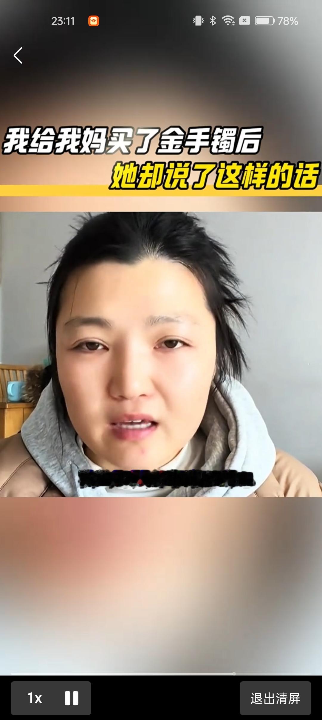 江苏,一妈妈过生日,女子给妈妈买了一个金手镯,本想表达孝心,想让妈妈开心,却没想到妈妈说了一句话,让女子心寒! “这个金手镯你给我了,以后我不在了,我也不会给你的,我会给儿媳妇。” 东西送出去,那东西处置权就在被送人手里。但这种场合,暖心话没有,礼貌的话没有,开头第一句话就是这个,让女子感觉一捧冷水迎面而来,浇她透心凉! 当时她爸爸,弟弟都在场,都没有发声。说明他们认同妈妈的说法,更支持妈妈的做法。 扎心的现实,重男轻女的事实,就像一把刀刺进女子的胸口。有些伤害一旦造成,就很难再愈合。或许这就是亲情里最无奈的地方,即使满心伤痛,却还是难以割舍。
