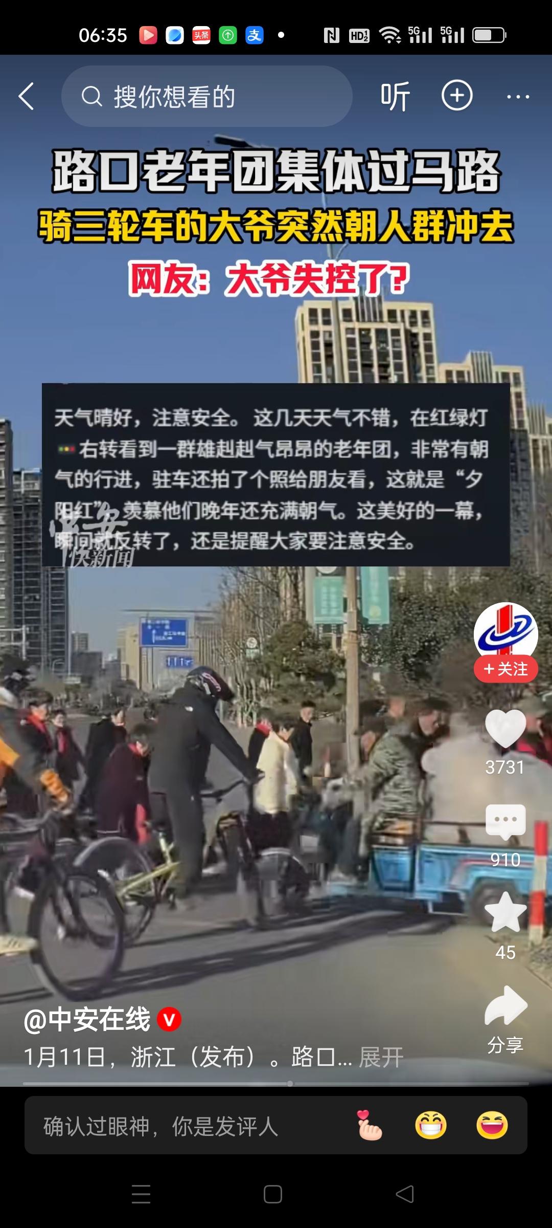 我不怪骑电动三轮车的大爷,毕竟还要去干活。等了半天了,这群过马路的大爷大妈也不让。 只有失控冲向人群。都是大爷,一边是衣着光鲜,有高额退休金。一边是还在地里刨食,不劳动就没吃的。中国就是这样,工资越高,退休金越高,工资越低,退休金也少。 工作的时候,凭能力凭本事工资有差异,这无可厚非。大家都退休了也不工作了,退休金都发一样该多好。