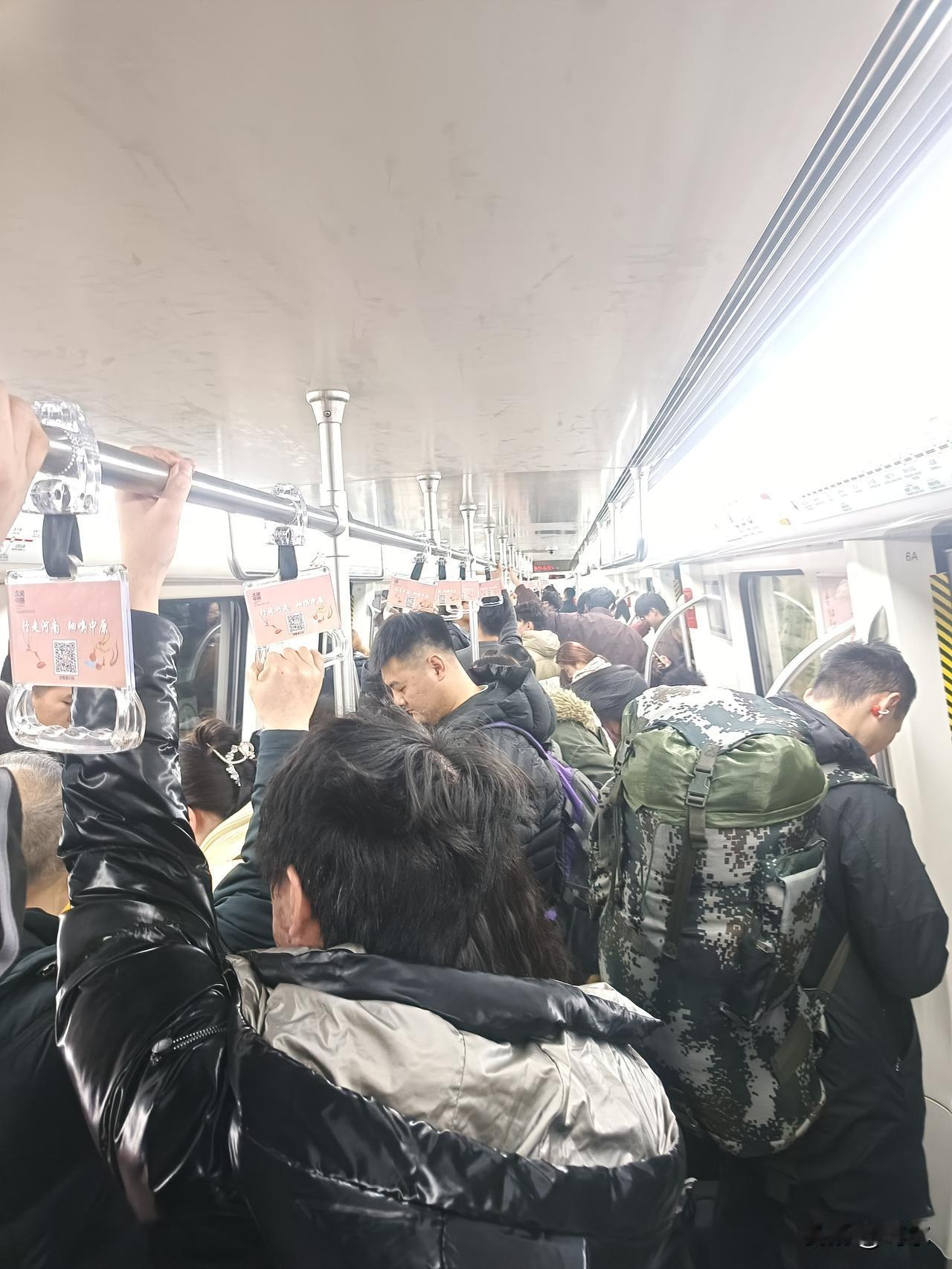 今年冬天的不同好久没有坐地铁了,最近就要降温,郑州地铁5号线人果然很多啊,真不愧是环线王者😎