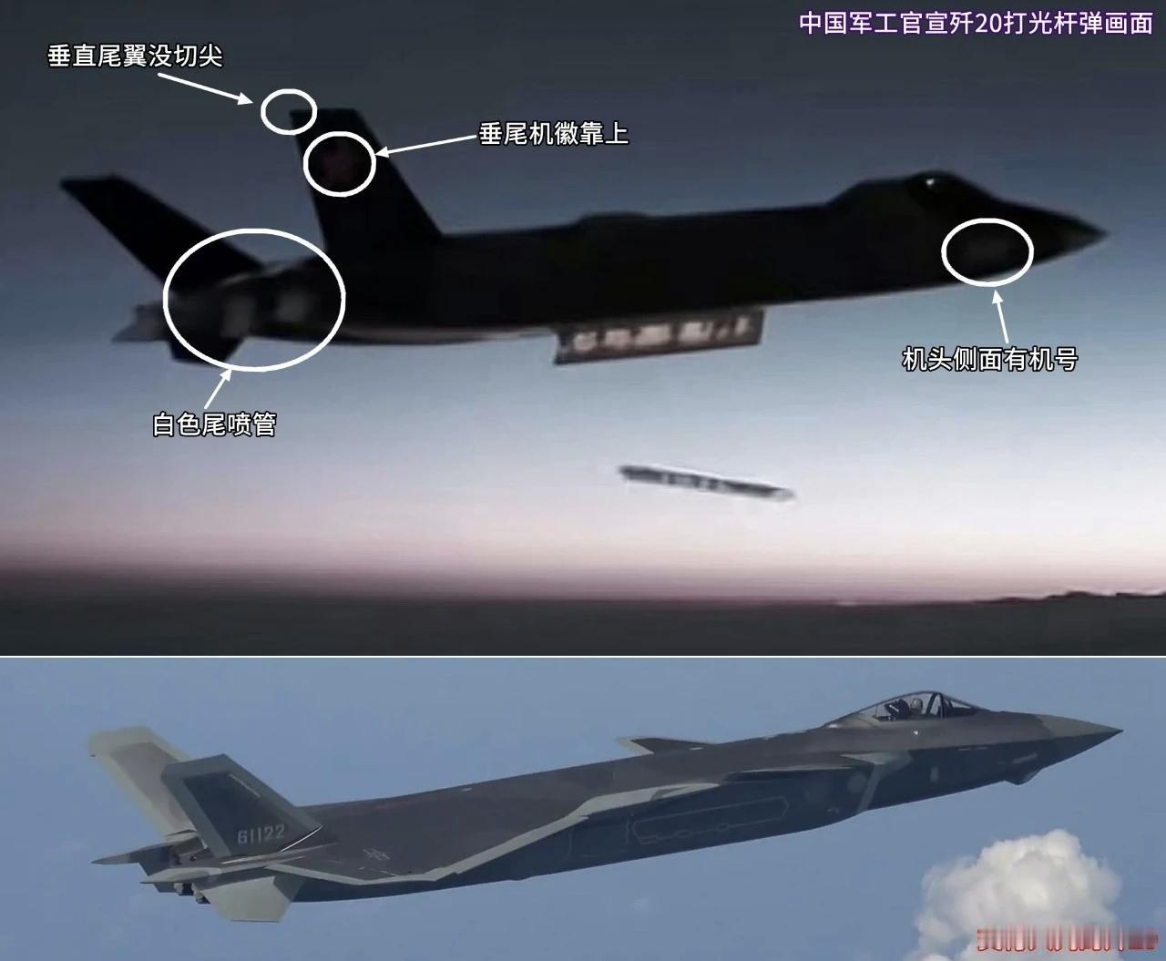歼-20隐身战斗机发射的神秘“光杆”导弹,究竟是什么? 有人说是最新改进型的霹雳-16远程空空导弹,特征是取消了弹翼,完全依靠弹体获得升力,就像一根会飞的“电线杆子”。 不过,仔细观察会发现,这架发射导弹的歼-20,是早期原型机之一,机身带有八一机徽,机身编号为“2002”,安装的独特的银白色尾喷管,时间是十几年前的,因此不太可能是新型“光杆”空空导弹。 这个“光杆”,更像是一根用于检验机腹内埋弹舱开启和弹射的“测试弹”。弹体尺寸与霹雳-15差不多。视频后半段的导弹点火命中目标的画面,那是编辑加上的CG特效画面,不是真实场景。