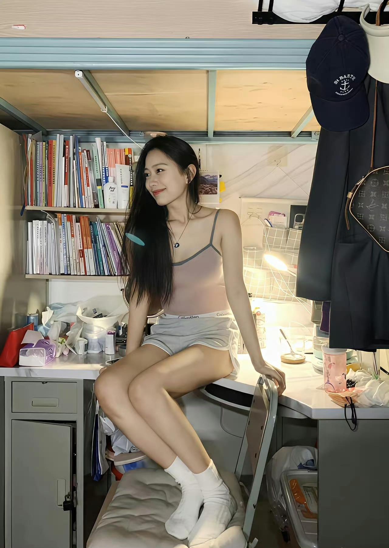 宿舍书桌前的松弛日常,浅粉吊带搭灰色短裤,把舒适穿在身上,在堆满书本的小天地里,随意摆拍都是藏不住的灵动与俏皮~