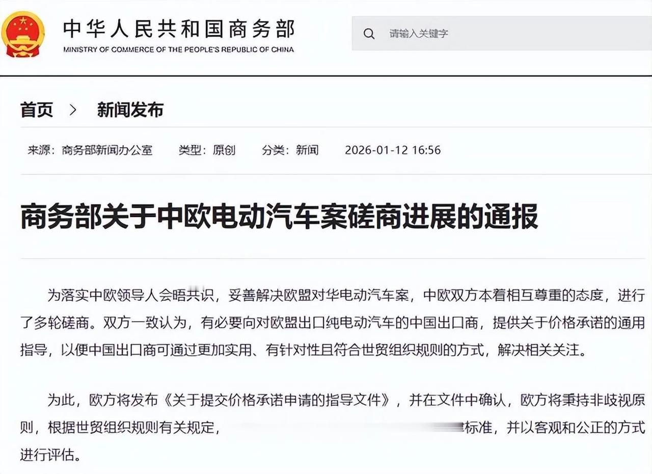 中国和欧盟宣布,双方就电动汽车关税问题达成了协议。这个消息无异于在贸易保护主义的寒冬里,点燃了一盆温暖的炭火。这不仅仅是一份关税协议,更是多边主义与理性对话的一次重要胜利,它背后藏着怎样的博弈与智慧?又将对世界产生哪些涟漪? 去年,欧盟委员会以所谓的“市场扭曲”和“不公平补贴”为由,宣布对中国电动汽车加征额外关税。这一举动看似是为了保护本土产业,实际效果却很快显现出两面性。 高关税如同一把双刃剑,在试图阻挡中国电动车的同时,也割伤了欧洲自己。欧洲消费者突然发现,心仪的电动车价格标签变贵了;欧洲的汽车制造商则抱怨,从中国进口的关键电池和零部件成本水涨船高,整个供应链的压力骤增。 这种“伤敌一千,自损八百”的局面,让最初的保护主义算盘听起来并不那么美妙。 面对压力,中方并没有沉默。我们采取了精准、对等的反制措施。这些措施并非为了激化矛盾,而是清晰表明立场:中国支持公平贸易,反对单边保护主义。中国的回应迅速而有力,让欧洲一些依赖中国市场和供应链的产业感到了切肤之痛。 业内专家纷纷警告,这场贸易摩擦若持续下去,只会拖慢双方乃至全球向绿色转型的脚步。正是在这种相互加码又都感到“疼”的现实下,谈判的窗口重新打开了。压力,有时恰恰是促成对话的动力。 转折点出现在2026年1月12日。经过多轮密集磋商,欧盟委员会正式宣布与中国就电动汽车关税问题达成协议。协议的核心方向包括合理的关税调整、更公平的市场准入条件以及对双方产业合作的前瞻性规划。 这纸协议,不是某一方的单纯让步,而是双方在权衡利弊后找到的一个新平衡点。它意味着,欧洲消费者未来有望以更合理的价格购买到优质的电动汽车,而中国车企也能在一个更加稳定、可预期的规则下开拓欧洲市场。贸易的桥梁重新加固,对谁都有好处。 人们不禁要问,在当今这个地缘政治如此复杂的年代,中欧为何能跨越分歧达成共识?根本原因在于双方经济结构的强大互补性,这是一种难以割裂的吸引力。中国拥有全球最完整、最高效的电动汽车产业链和制造能力,而欧洲市场对电动车的需求旺盛,同时在整车设计、品牌价值和部分尖端技术上底蕴深厚。 最新数据显示,2025年中欧之间的电动汽车及相关零部件贸易额已是一个天文数字,这种深度的相互依存让“脱钩断链”的成本高到难以承受。 欧盟内部始终存在追求“战略自主”的声音,尤其在特朗普总统的“美国优先”政策和财政部长贝森特主导的强硬关税策略衬托下,许多欧洲领导人更倾向于展现独立性。 中欧之间并无根本性的地缘政治竞争,这为务实合作留下了宝贵空间。欧盟的选择,是一次基于自身利益的理性回归。来自内部的压力也助推了这一转变。德国汽车工业协会、法国汽车制造商委员会等业界团体曾多次公开反对高额关税,他们深知与中国供应链“硬脱钩”将严重削弱自身竞争力。 同时,欧洲的环保组织和普通消费者也渴望更实惠的绿色产品,以加速能源转型。多重压力下,重回谈判桌成了最符合欧洲利益的选择。 这份协议的影响,将远远超出汽车行业本身。最直接的受益者将是两地的普通民众和实体经济。欧洲家庭购买电动车的门槛降低了,中国的先进制造企业获得了更稳定的海外发展环境,两边的产业链企业可以更安心地规划长期合作与技术协同创新。 在单边主义、保护主义噪音四起的时代,它证明了通过平等对话与协商,完全能够找到互利共赢的解决方案。这对于全球绿色产业的贸易规则构建,也具有积极的标杆意义。联合国贸易和发展会议近期的一份报告就强调,开放协作的供应链对实现全球气候目标至关重要。 当然,前路并非一片坦途。协议的最终落实细则将考验双方的智慧与执行力,其他产业是否会效仿或产生连锁反应也需观察。长期来看,如何在健康的竞争中深化合作,平衡好竞争与伙伴关系,将是中欧需要共同面对的课题。 但从2026年年初的这份协议中,世界看到了一个明确的信号:对抗导致双输,合作才能共赢。在动荡变化的世界格局中,中欧作为两支重要的稳定力量,其战略协作的深化,本身就是对全球经济复苏与气候治理的巨大贡献。 这次握手说明,即便在单边主义抬头的时候,理性、务实与平等的对话,依然是穿透迷雾、照亮前路的最有力工具。这道曙光,值得被珍视。 中欧达成重要共识 电动汽车案获进展——2026年01月12日 22:00 来源:中国新闻网