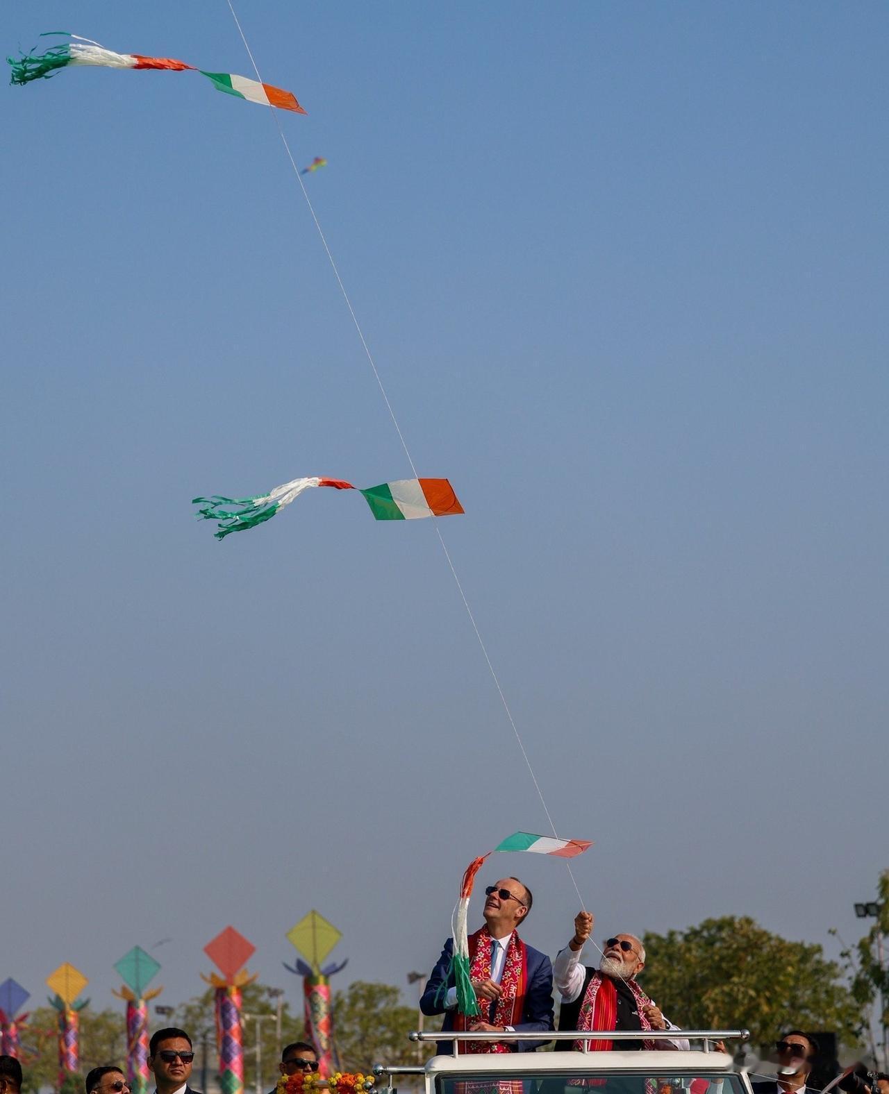 莫迪带着默茨放风筝 印度国际风筝节期间,艾哈迈达巴德的天空充满了色彩和活力。 印度总理莫迪带着德国总理弗里德里希·默茨参加了这个特别的场合,和德国客人一起放风筝! 印度国际风筝节(International Kite Festival),在当地也被称为 Uttarayan 或 Makar Sankranti,是印度最盛大、最绚丽的传统节日之一,尤其在西部的古吉拉特邦(Gujarat)最为出名。