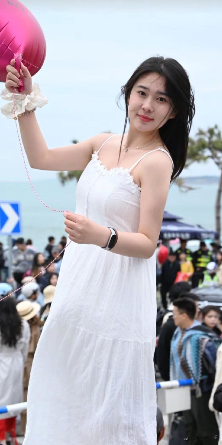 少女清新穿搭,黄色吊带裙搭配米色长裤,轻松惬意。