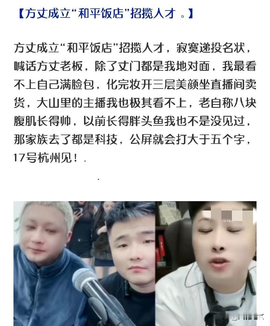 网红方丈成立“和平饭店”,公开招揽具有争议性的曾“在外面惹过事”或拥有“敌对家族”背景主播加入 上海和平饭店,这个招牌,是上海的一张名片 始建于1900年,承办过万国禁烟会、见证了孙中山与越飞宣言的签署、举办过“开国第一宴”、审判过日本战犯...是许多重大历史的见证地 如今被一个网红模仿电影《和平饭店》,招揽有争议性主播加入,拿来作为收割流量的工具。 这事儿,您怎么看👀?