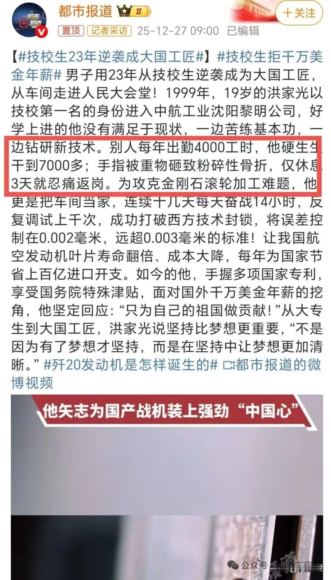 非常令人感动[赞][赞] “别人出勤4000工时,他硬生生干到7000多;手指被重物砸致粉碎性骨折,仅休息3天就忍痛返岗。”