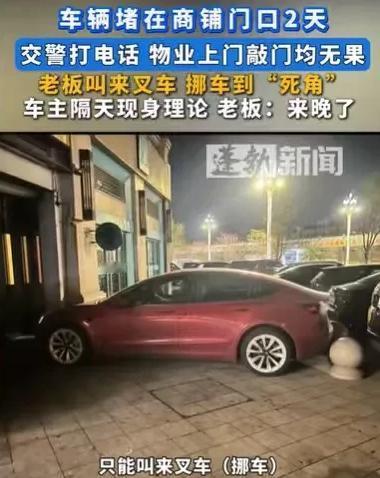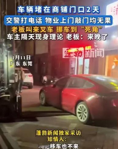 广东东莞,车主将车停在一个商铺门口,停了两天,商铺老板报警两次,他不来挪车,交警打电话他也不理睬,物业上门敲门,他也不当一回事,商铺老板一气之下,叫来叉车,将车挪到死角,这下车主现身了,他和商铺老板理论,商铺老板说道:谁叫你现在才来?现在来有什么用? 广东东莞的一条商业街,那天一早,商铺老板像往常一样开门准备营业,刚推开门就发现一辆陌生车辆横在自家店门口,把一半的出入口都挡住了。这样一来,顾客根本没法顺利进店,货物进出也成了难题。 商铺老板起初以为车主只是临时停靠,很快就会过来挪车,于是就耐心等待了一段时间。可等到上午十点多,车主依旧没有出现,店里的生意已经受到了明显影响, 好几拨顾客都因为没法顺利进店而转身离开。无奈之下,商铺老板只好先报警求助,希望警方能联系到车主前来挪车。 警方很快联系上了车主,对方在电话里答应得好好的,说马上就过来挪车。可商铺老板左等右等,直到当天傍晚,还是没见到车主的身影,那辆车依旧稳稳地停在店门口。 眼看一天的生意都要被耽误,商铺老板再次拨打了报警电话,可这次车主干脆不接电话了,警方也只能再次尝试联系,却始终没有回应。 第二天一早,违停车依旧“霸占”着商铺门口,商铺老板的怒火彻底被点燃。他通过物业查到了车主的居住信息,物业工作人员特意上门敲门提醒,可无论怎么敲,车主都不开门,仿佛没听见一样。 连续两天被挡门,生意严重受损,多方沟通求助却都无果,商铺老板彻底没了耐心。他觉得车主这种行为就是故意为之,根本没把别人的权益放在眼里。为了能正常经营,他决定不再继续妥协,当即联系了附近的叉车师傅,打算自己想办法把车挪走。 没过多久,叉车师傅就赶到了现场。周围的商户和路过的行人得知情况后,都纷纷围过来看热闹,大家都对车主的违停行为表示不满,全力支持商铺老板的做法。 在众人的注视下,叉车师傅小心翼翼地将违停车抬起,然后稳稳地转运到了附近一处废弃的死角区域,这里进出不便,除非再次叫叉车,否则根本没法把车开出来。 让人没想到的是,叉车刚把车放好,之前“消失”了两天的车主就急匆匆地赶了过来。原来他是过来取车时发现车辆不见了,四处打听后才知道是被商铺老板挪走的。车主找到商铺老板时,语气十分激动,大声地和老板理论,指责老板不该私自挪动自己的车辆。 面对车主的指责,商铺老板毫不示弱,冷静地说出了自己的态度,一句话就戳中了要害。周围的商户和行人也纷纷帮着商铺老板说话,你一言我一语地细数车主的过错, 吐槽他违停两天影响别人经营,还无视多方提醒的行为。车主被大家说得面红耳赤,原本激动的情绪也渐渐平复下来,站在原地说不出话来。 有围观者把这一幕拍摄下来,发布到了网上,很快就引发了全网网友的热烈讨论。不少网友表示“干得漂亮!对付这种无赖就该这样” “车主完全是自作自受,明知道挡着别人生意还拒不挪车,就该让他尝尝麻烦”“商铺老板已经做到仁至义尽了,两次报警、交警催收、物业提醒,换谁都会被逼急”。 据悉,后续在周围商户的调解下,车主意识到了自己的错误,主动向商铺老板道了歉,承认自己的违停行为影响了商铺的正常经营,还对老板的耐心沟通置之不理。 商铺老板见车主态度诚恳,也同意帮车主联系叉车,把车从死角挪出来,但要求车主当场把车开走,并且保证以后不会再出现类似的情况。 这场因违停引发的纠纷,最终以车主道歉收场。但这件事也给所有车主提了个醒,停车时一定要遵守规定,顾及他人的权益,不要随意占道停车。 同时也让大家明白,遇到问题时要积极沟通解决,无视他人合理诉求、一味蛮不讲理,最终只会给自己带来麻烦。 对此,你们有什么看法,欢迎评论留言~
