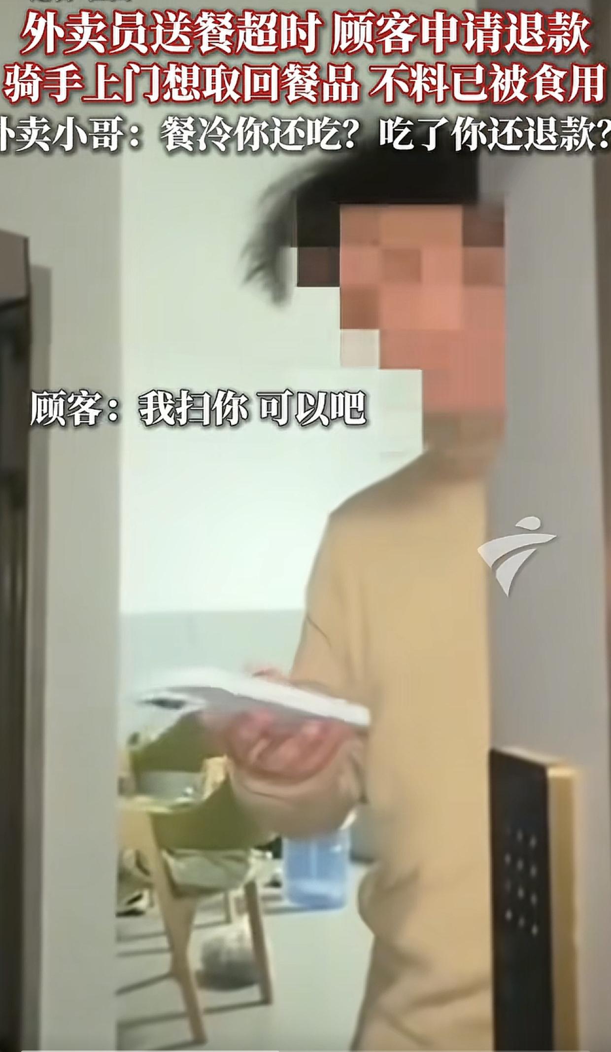 江西,一名男子吃外卖后以餐冷为由申请退款,外卖员上门想取回餐品,男子谎称丢楼下垃圾桶了。外卖员发现真相后气愤地说:“餐冷你还吃,吃了你还退款?” 男子订了一份外卖,外卖员送餐超时。男子接过外卖时没说什么,但随后以餐冷为由申请退款。 外卖员接到平台反馈后上门想取回餐品,可男子说外卖已经被他丢进楼下垃圾桶了。但站在门口的外卖员向屋内扫了一眼就发现,外卖袋子就放在椅子下面。 外卖员用手一指问:“餐呢?”男子见瞒不住,这才承认外卖已经被自己吃了,并且掏出手机表示可以把餐费还给外卖员。 但因为此事被白白折腾了半天的外卖员已经按捺不住心中的气愤,大声质问男子,餐冷你还吃,吃了又退款,这不是吃白食吗? 男子听了这话恼羞成怒,拿起手机选择报警,说外卖员是寻衅滋事,随后两人发生了激烈的争吵。 看到视频,感觉男子的做法太不地道,外卖超时要求退款是合理的,但这应该以餐品未被食用为前提,又要钱又吃东西,等于获得了双重利益,相当于白嫖。 这件事情的性质也从消费者维权的性质,变成了虚构事实,想占便宜的欺诈行为。 男子这种道德感以及诚信精神双双缺失的做法如果得逞,外卖员辛苦配送后不但要因超时接受平台的处罚,还要承担餐品的损失,心中的气愤可以理解。 按理说,人家外卖员找上门来并戳穿了男子的谎言,男子给人家赔礼道歉还来不及呢,谁知他居然还好意思报警,这种人被网友们一边倒地谴责是必然的!