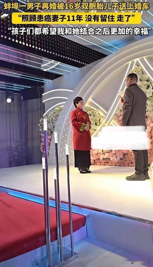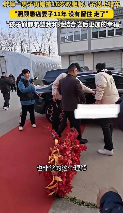 若遇到这种情况,你会支持吗? 近日,安徽蚌埠的一幕令人动容:一位男子再婚办喜事,16岁的双胞胎儿子竟然亲手将他送上婚车。这不仅是一场简单的婚礼,更像是一份深沉的家庭情感和责任的传承。 令人感慨的是,这位男子曾悉心照料患癌前妻长达11年,尽管未能挽留她的生命,但他用爱与坚守诠释了什么是真正的责任与温暖。如今,他独自抚养双胞胎儿子,孩子们也用行动表达了他们的心声:“希望爸爸和妈妈结婚后能更加幸福。” 这段故事折射出无数家庭的真实写照:爱,有时不是占有,而是放手;责任,不只是对伴侣,更是对子女的守护。父母的坚韧与付出,孩子的懂事与支持,让人感受到家庭的温暖与力量。 面对这样的情感场景,你会怎么选择?是支持父亲再一次追寻幸福,还是觉得责任重于一切?其实,真正的幸福,或许就是在彼此的理解与支持中找到那份最纯粹的温暖。 这不仅是一场婚礼,更是一份关于爱的坚持与希望的传递。无论经历多少风雨,只要心中有爱,就有前行的力量。这样的家庭故事,值得我们每一个人深思:在复杂的人世间,最打动人心的,永远是那份真挚的情感和无私的守护。