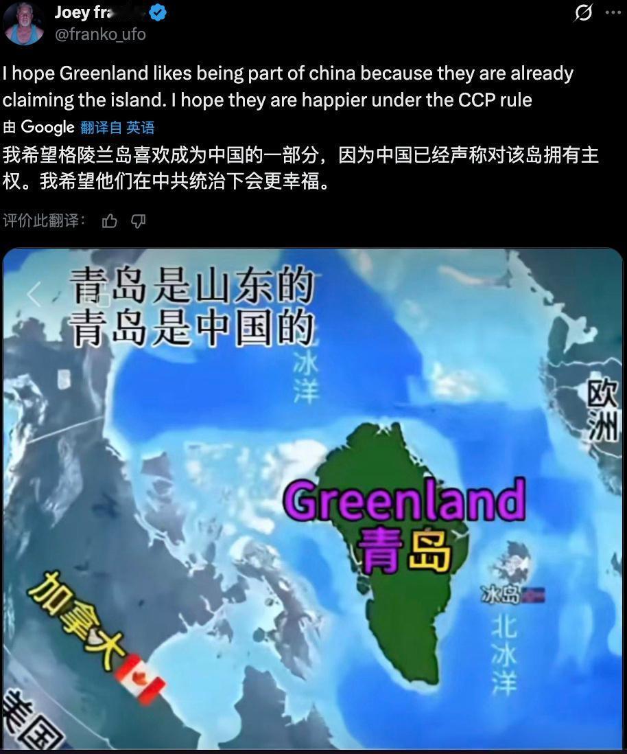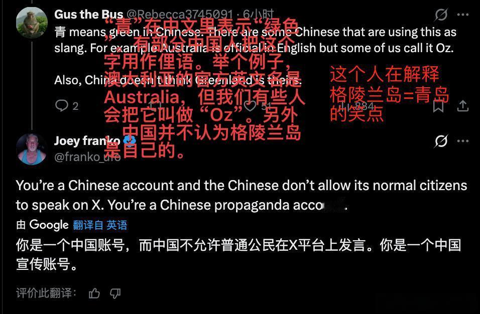 怎么就当真了? 近日,看到一个美国网民发帖,他把中国网友们的一个网络梗给当真了,并把这个梗当成证据说中国认为格陵兰岛是他们的…. 尽管有中国网友在下面给他解释这是一个网络梗,但他就是不听….这是遇到一个不懂幽默的美国人了….