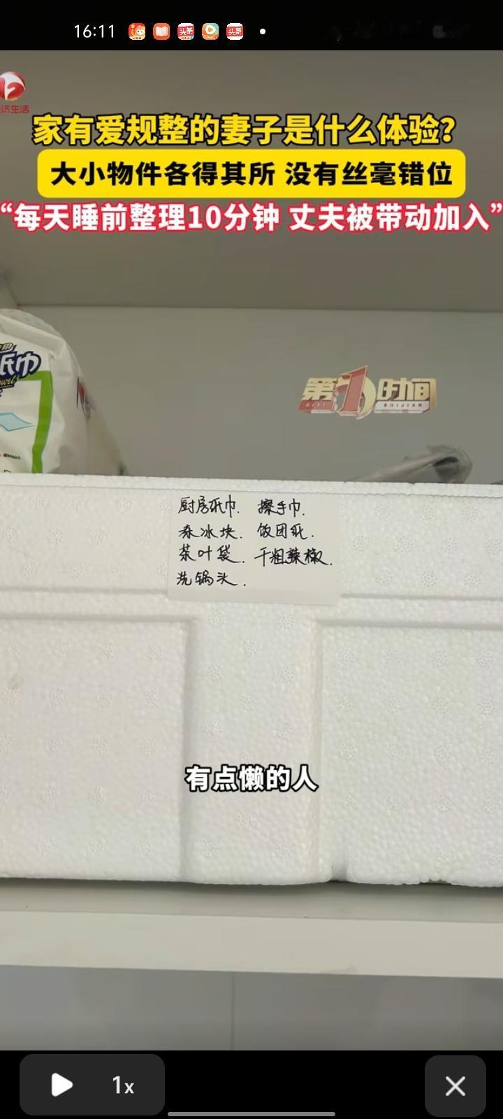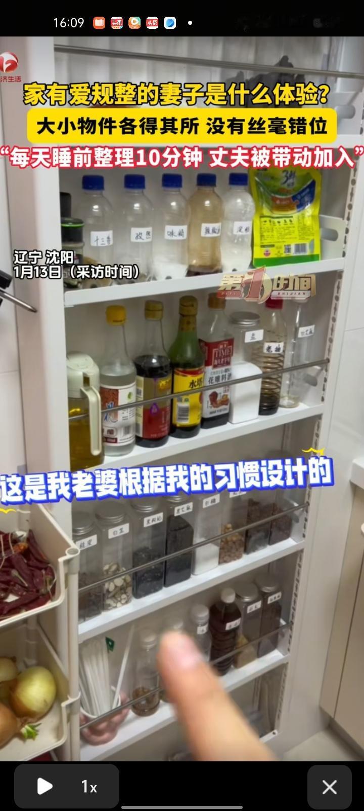 1月11日,辽宁沈阳。男子晒视频表示,妻子是位特别勤快、特别喜欢收拾的人,在家里总会把各种东西收拾的井井有条。自己本身是有点慢、有点懒的人,在她的带动下,自己逐渐喜欢干家务了,每天睡前整理十分钟,开始之后全情投入,结束之后立马停止。