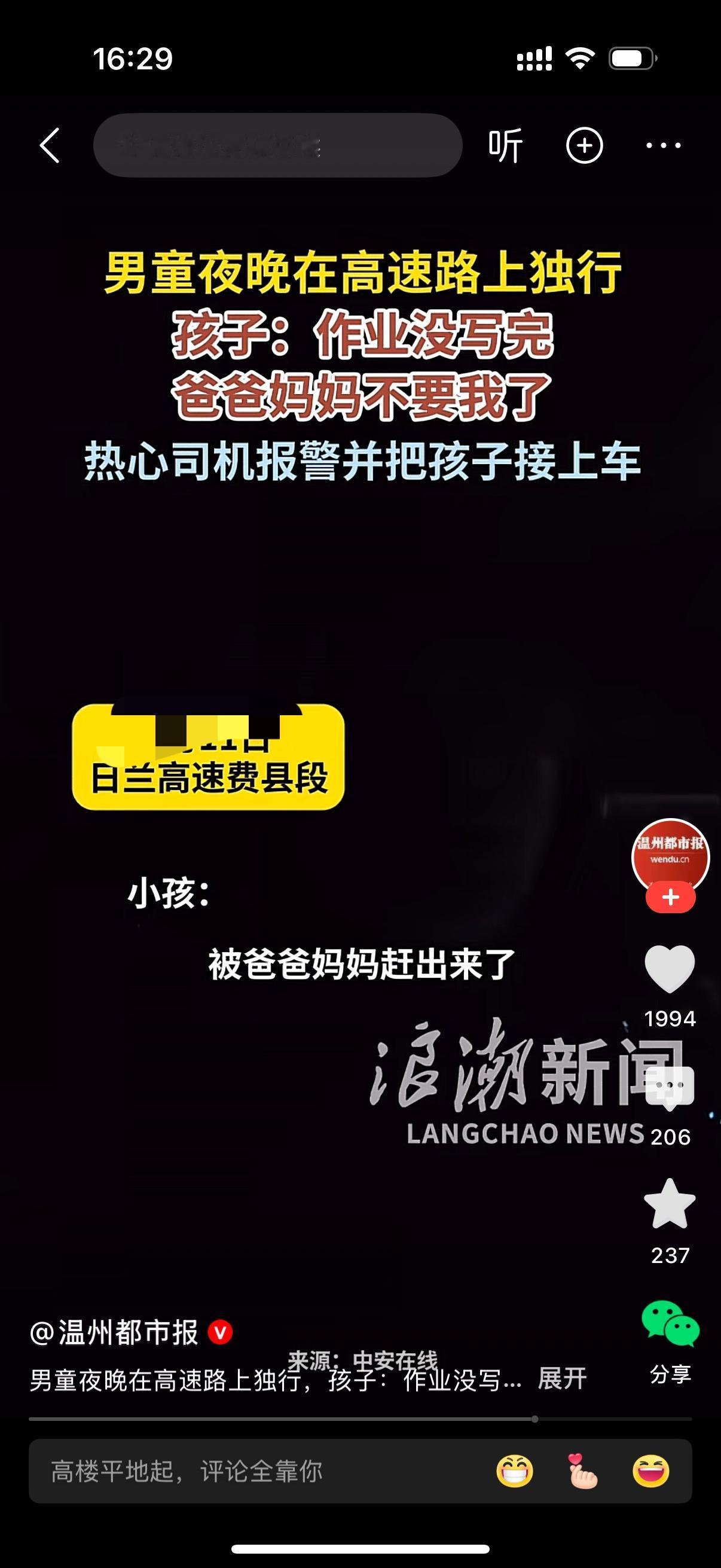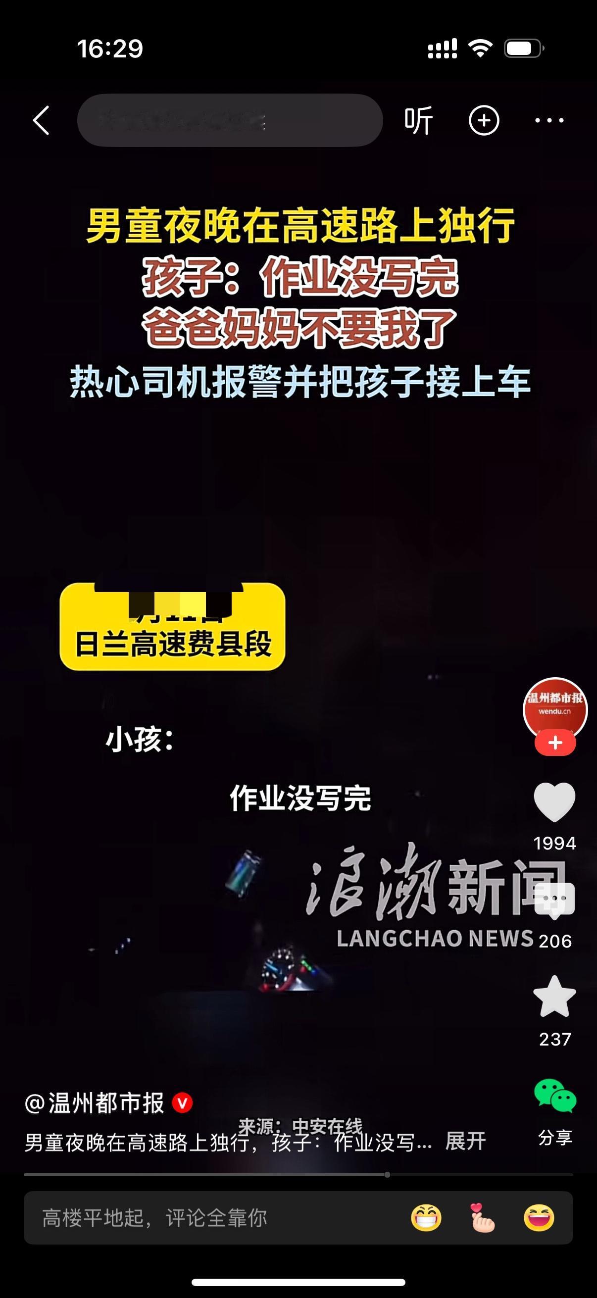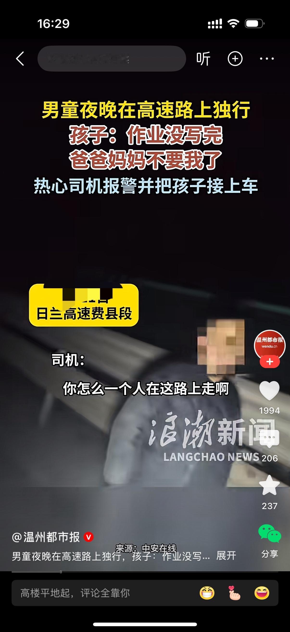 男童夜晚在高速路上独行。热心司机看到这一幕,下车询问,你怎么一个人在这路上行走啊?男孩说,作业没写完,被爸爸妈妈赶出来了。爸爸妈妈不要我了。热心司机担心高速路上太危险,报警后把孩子带上车。男童的父母太不像话了,学习能比孩子的生命安全还重要?真是枉为父母。