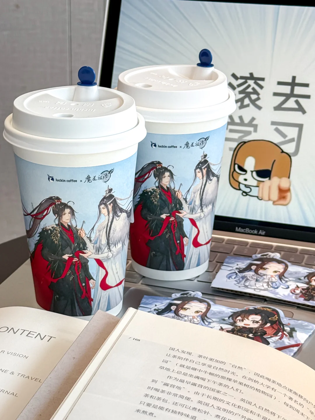 当代女大学生的学习法 开启特困生咖啡续命模式 上午咖啡提神☕ 下午抹茶醒脑🍵 水牛学习法,知识框框入脑 点上两杯瑞就是学 祈祷!我磕CP的动力统统转化到学习上! ☕雪酪拿铁 微凉的奶盖,有淡淡的芝士咸奶 搅拌充分后,入口丝滑醇厚 口感很饱满,喝完猛猛学 🍵雪酪抹茶 浓厚的咸香口感中夹杂浅浅抹茶风味 抹茶清香伴有轻微苦涩,清爽不腻 搅拌后像一杯液体抹茶小蛋糕 点两杯还get了魔道祖师动画联名周边 吧唧冰箱贴/光栅卡/双人立牌 老瑞,知道期末周的我很苦 但你给的奖励未免也太丰盛了!