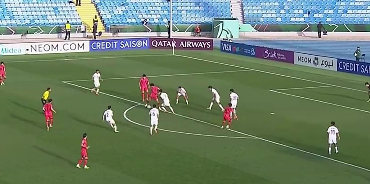 U23亚洲杯小组赛乌兹别克斯坦2-0战胜韩国队小组第一晋级 北京时间1月13日29:30分,U23亚洲杯小组C组的比赛,韩国vs乌兹别克斯坦。韩国队和乌兹别克斯坦队都是一胜一平积4分,韩国队凭借净胜球优势排名第一的 乌兹别克斯坦队排名第二。上半场双方势均力敌,0-0握手言和。下半场乌兹别克斯坦队攻入两球,2-0战胜韩国队,乌兹别克斯坦小组第一晋级八强。 主裁判一声哨响比赛开始了,场上穿着红色球衣的是韩国队,穿着白色球衣的是乌兹别克斯坦队,韩国队从右往左攻,比赛的第7分钟韩国队获得第一个角球。韩国队的射门打高了。第15分钟韩国队获得角球没有形成射门。第15分钟乌兹别克斯坦获得角球,远射打高了。第32分钟韩国队获得角球,没有形成射门。第38分钟乌兹别克斯坦获得角球,远射打高了。第43分钟乌兹别克斯坦获得前场定位球,被防守球员破坏出底线,获得角球出了底线。上半场双方都有3次射门,都没有打到门框范围之内。上半场结束双方战成0-0。 下半场易边再战。第48分钟乌兹别克斯坦16号小将石破天惊的射门攻入一球,乌兹别克斯坦1-0领先。第56分钟乌兹别克斯坦队射门滑门而过, 韩国队逃出一劫。第70分钟乌兹别克斯坦队的9号球员大力抽射球打在横梁下方弹进球门。乌兹别克斯坦队2-0领先。此后,韩国队调兵遣将 ,进行人员调整加强进攻。但是都没有取得进球。比赛的第83分钟韩国队非常有威胁的射门,被乌兹别克斯坦队的4号球员在门线上解围。全场比赛结束,乌兹别克斯坦2-0战胜韩国队,小组第一晋级八强。韩国队能否出线,还要看黎巴嫩和伊朗队比赛的结果。现在黎巴嫩1-0领先伊朗。照这样下去,韩国队小组第二晋级。亚洲杯U22
