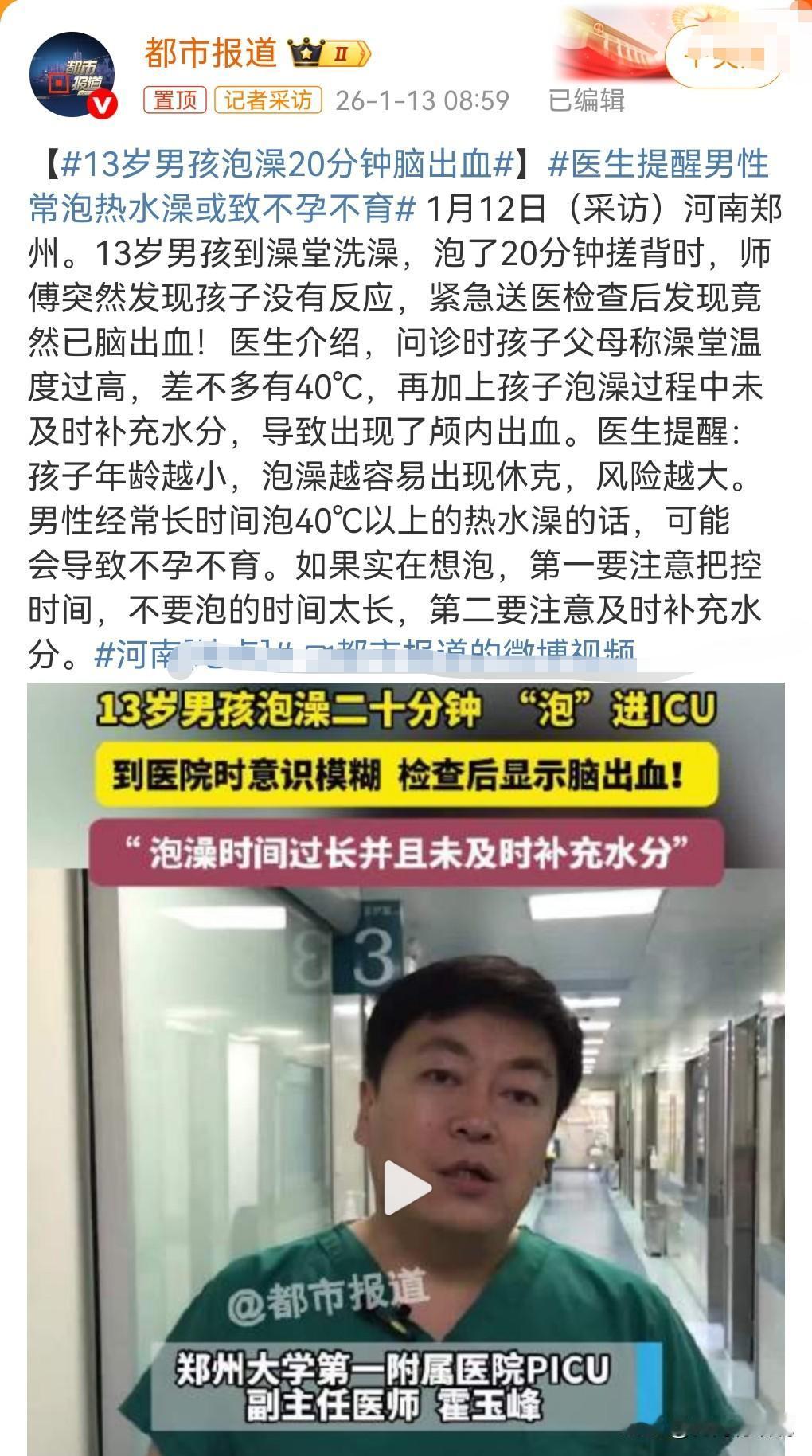 我的天呐,泡澡的危害这么大的吗?有用的知识又增加了,这真是敲响了警钟啊。 1月13日热搜,13岁男孩泡澡20分钟脑出血。 水温才40度,没想到泡了20分钟就脑出血了。 而且医生提醒男人最好不要泡澡,有可能导致不孕不育。 这还是挺可怕的。