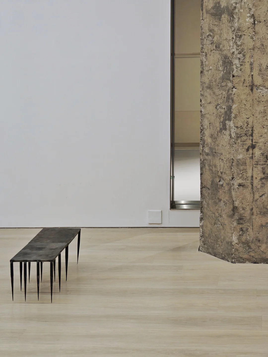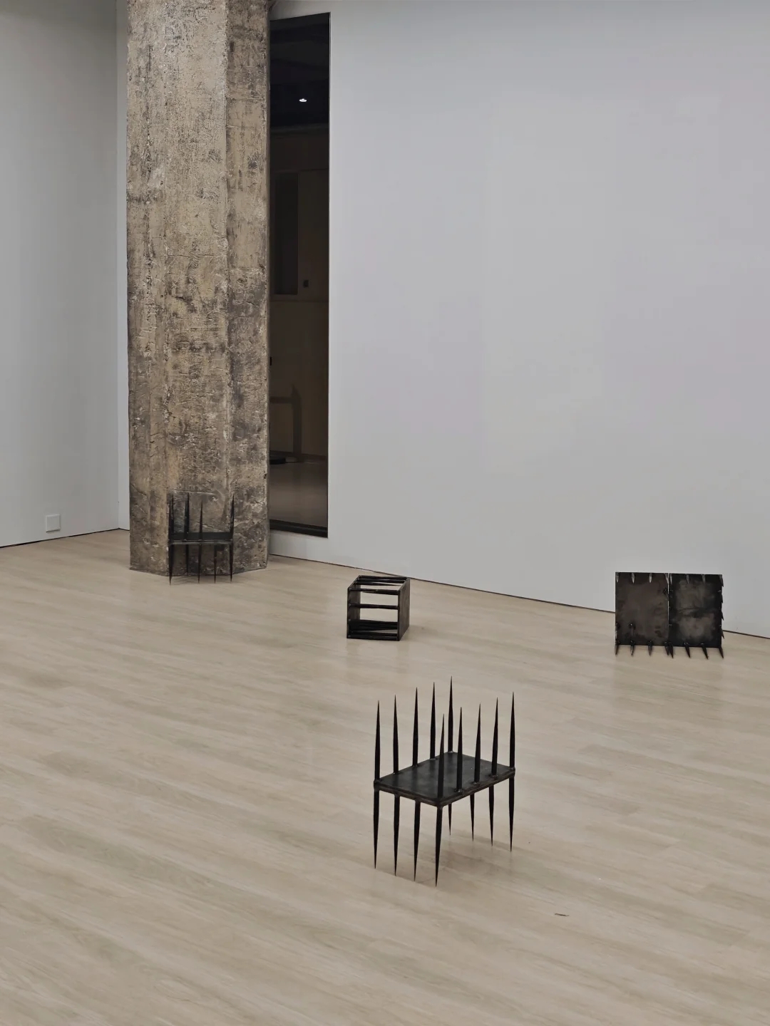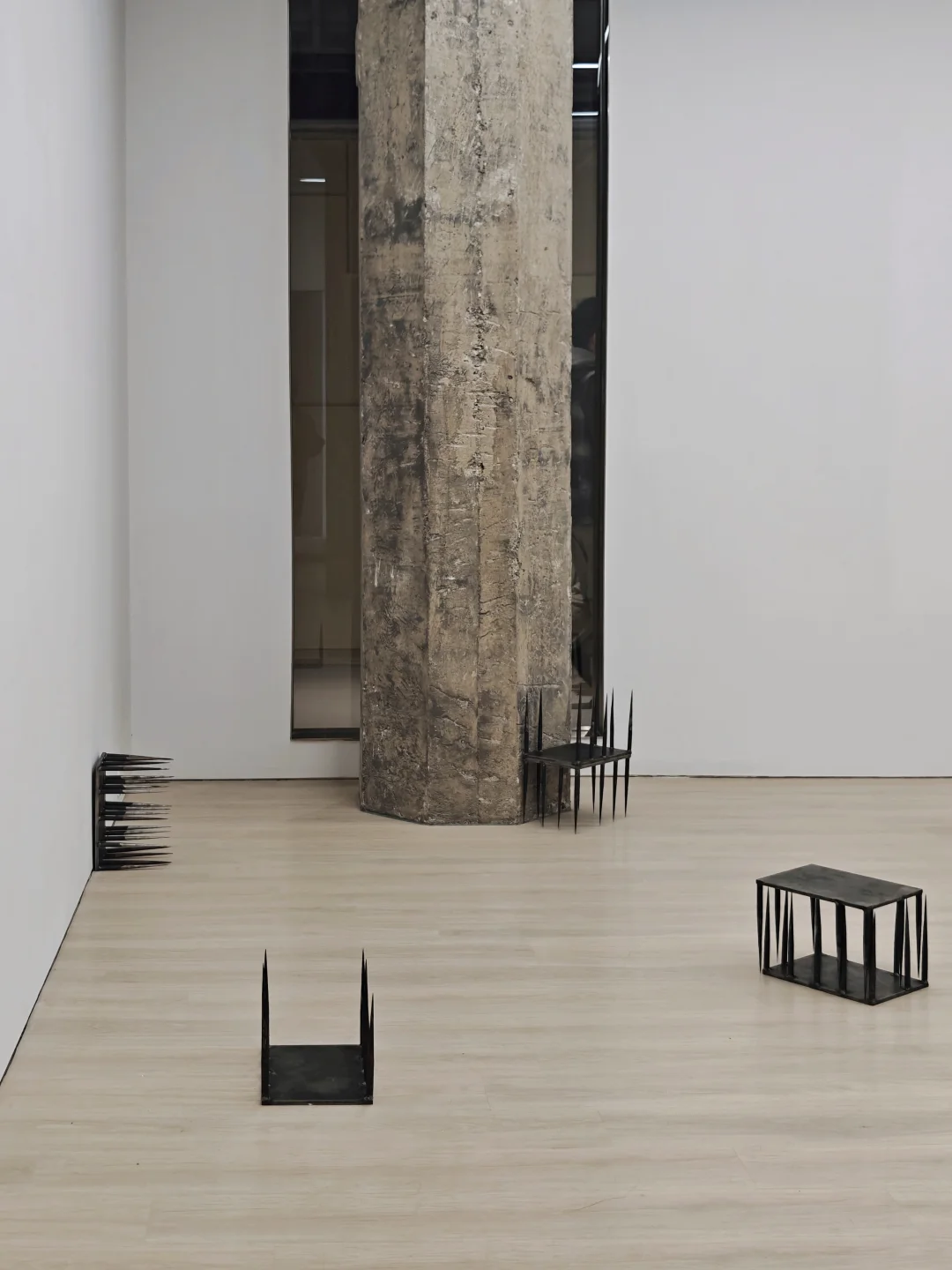 是散落于展厅各处的铁板与铁刺组合装置