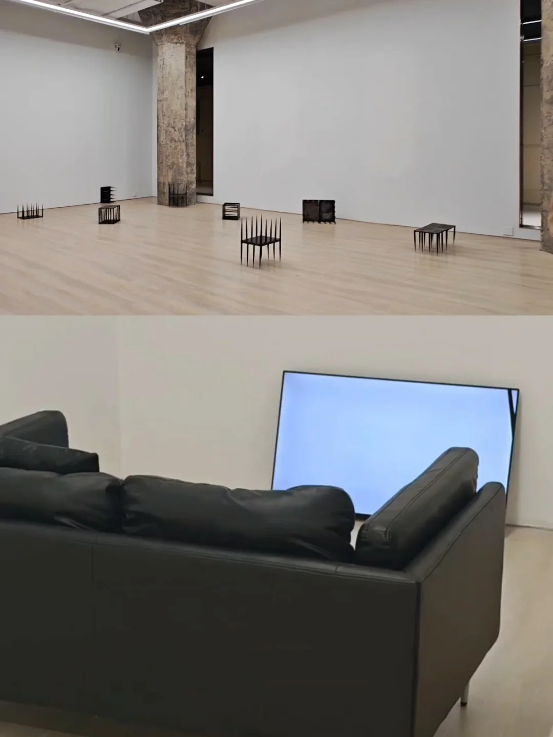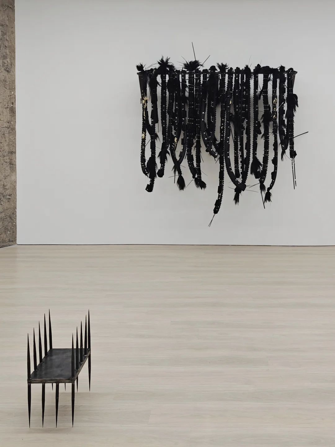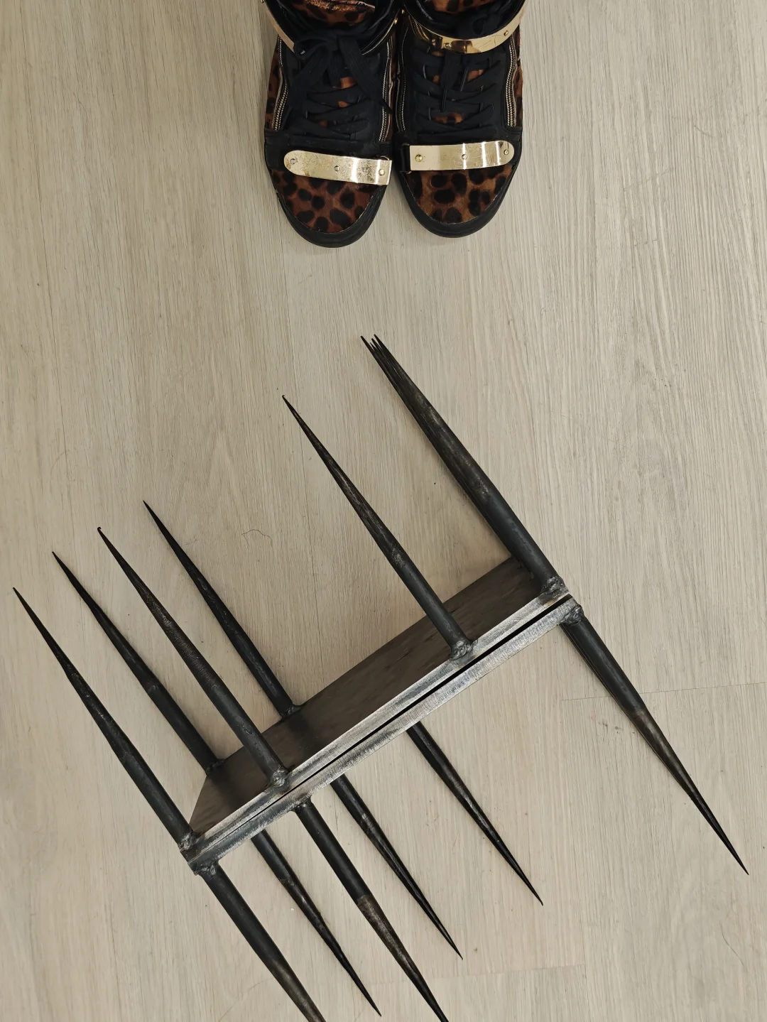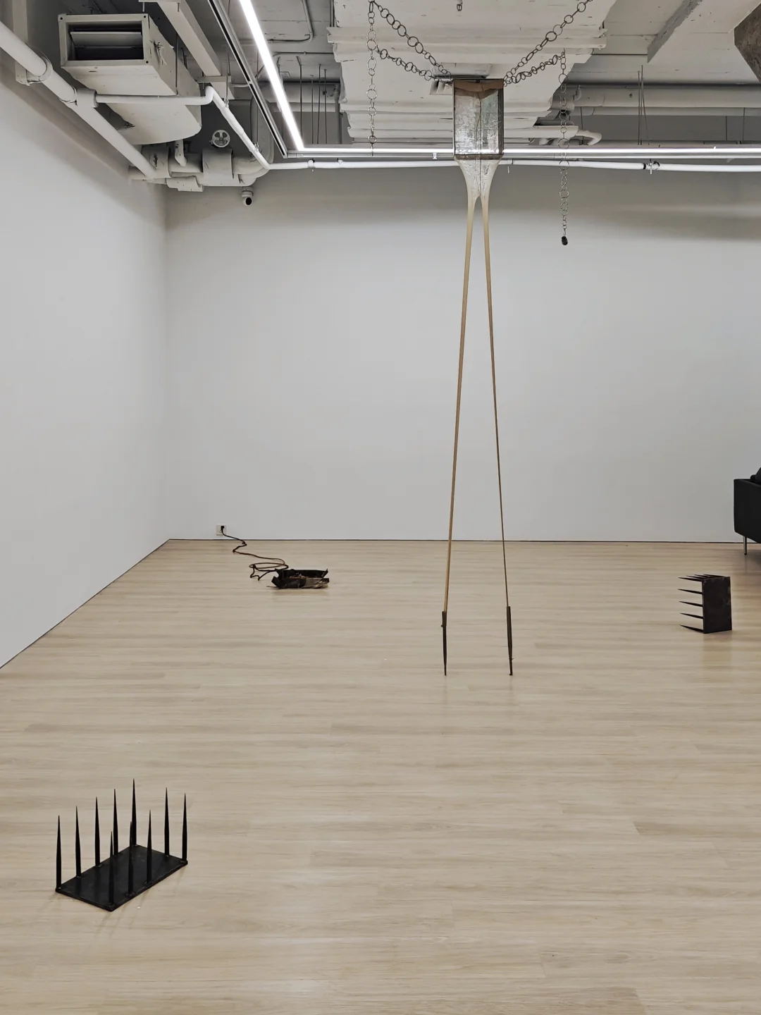 是散落于展厅各处的铁板与铁刺组合装置