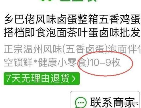 最近看到了一个有意思的事,商家真是想钱想疯了!男子网购“10-9”枚卤蛋仅收到1个,商家竟称“10-9”中的“-”是减号,10减9等于1,发货无误,此举瞬间引爆网络舆论,网友吐槽商家玩文字游戏误导消费者,最终商家向男子退还10倍价款36元。 明眼人都能看出来,商家就是故意玩文字游戏误导消费者。 正常情况下,商品标注“10-9枚”,谁都会理解成“9到10枚”的区间,哪有人会往减号上想?商家这么解释,说白了就是为了用低价吸引下单,又想少发货省成本,把消费者当傻子耍。 这种小聪明看似占了便宜,但现实却是砸了自己的招牌。 这甚至已经不是简单的“误会”或者说“营销策略”了,而是直接涉嫌侵犯消费者权益,我国《消费者权益保护法》明确规定,商家不能作引人误解的宣传,商家用模糊的标注误导消费,本质上就是欺诈! 这次消费者维权成功,商家退还10倍价款,看得人解气又痛快,也算是给那些耍小聪明的商家提了个醒:消费者不是好糊弄的,违法违规迟早要付出代价。 做生意拼的不是套路,是诚信,靠文字游戏或许能骗得了一时的订单,但留不住回头客。 希望这次闹剧能给所有商家敲警钟,踏踏实实地做好产品、明明白白地标注信息,才是长久之计,同时平台也该加强监管,把这些“套路商家”清理出去,让消费者能放心购物。 以上均是小编个人看法,如果您也认同,麻烦点赞支持!有更好的见解也欢迎在评论区留言,方便大家一同探讨。{抱拳}