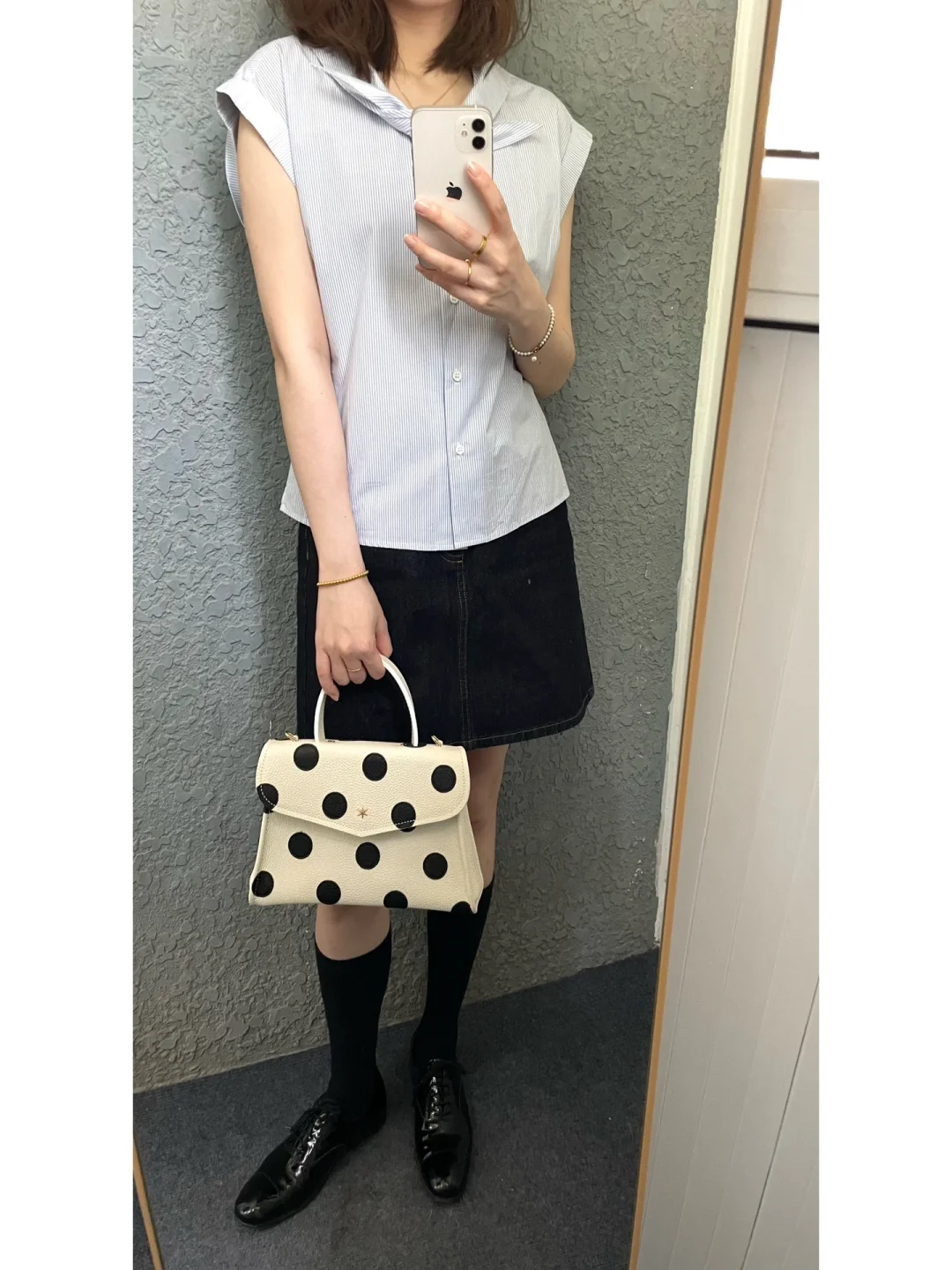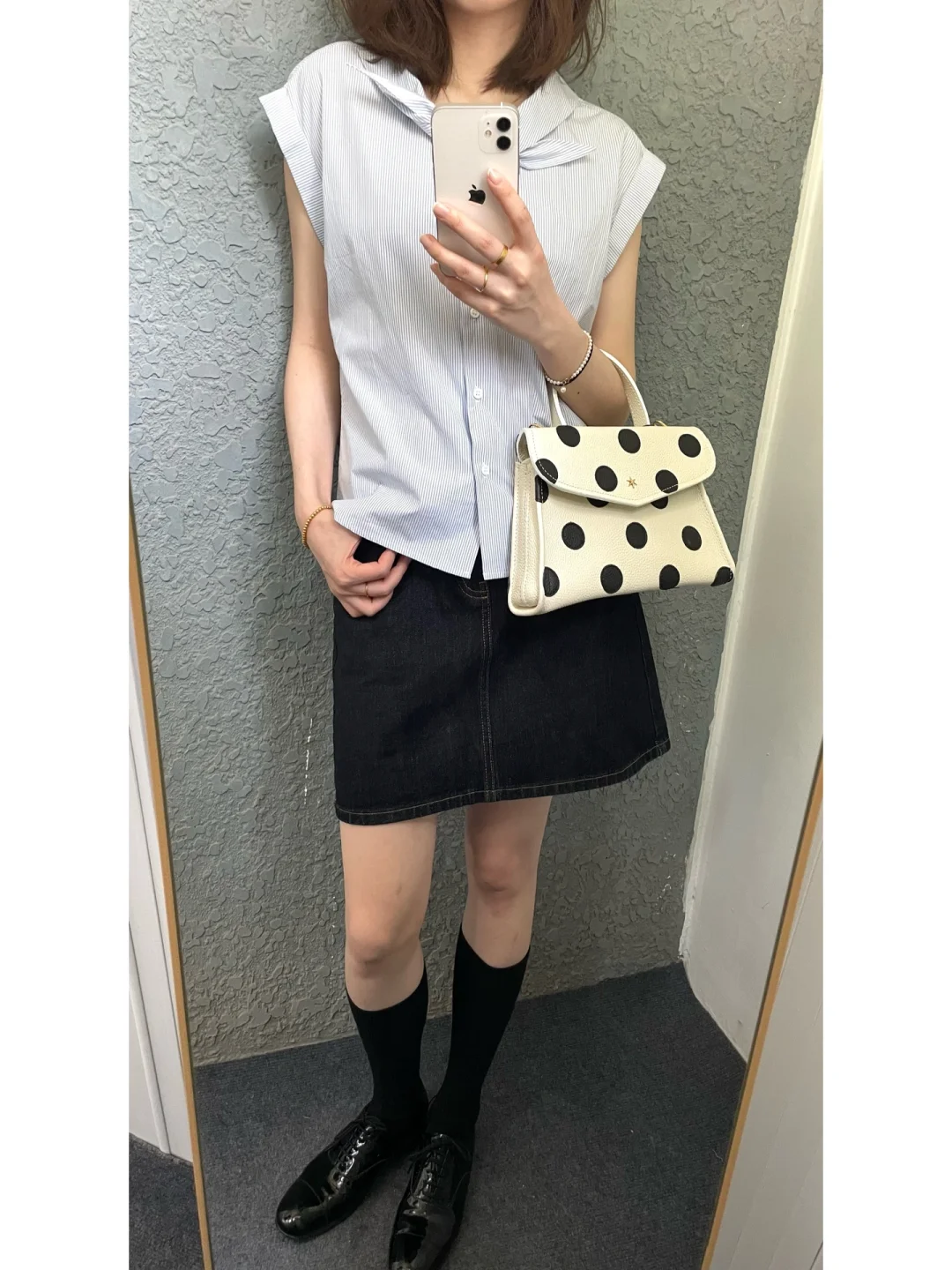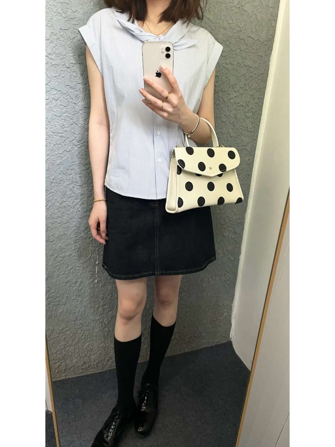 新入的波点包包超级复古 荔枝纹皮也很有质感 可优雅可俏皮 百搭又个性~