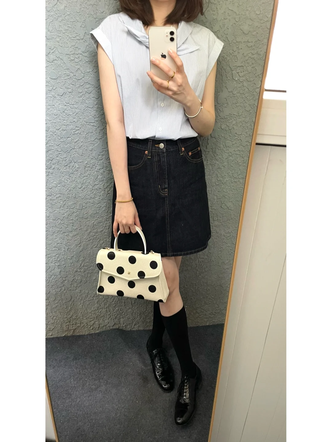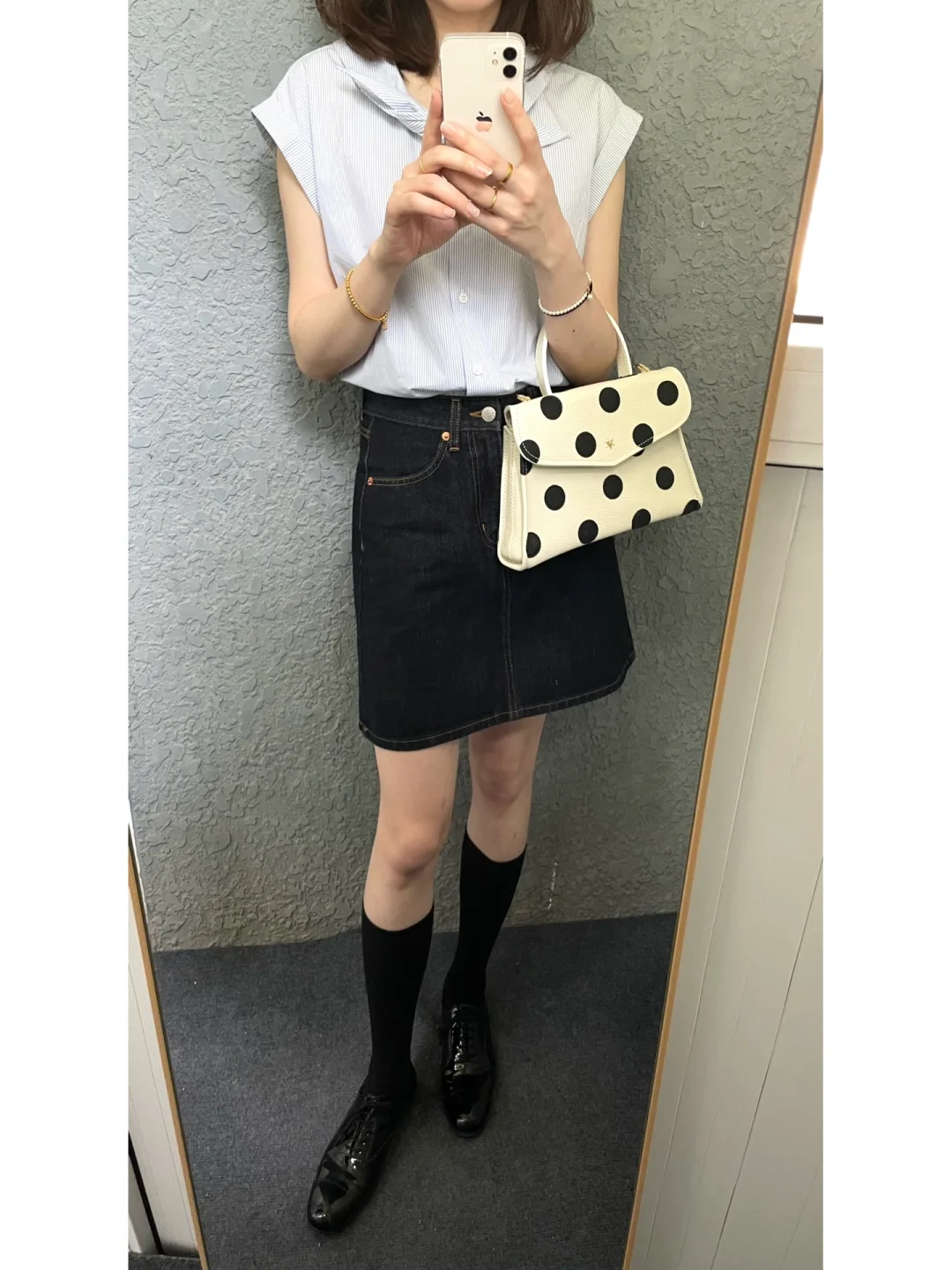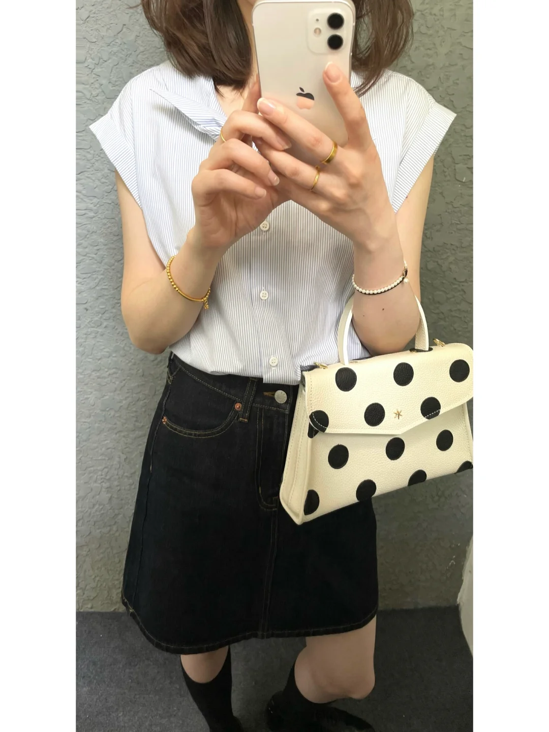 新入的波点包包超级复古 荔枝纹皮也很有质感 可优雅可俏皮 百搭又个性~