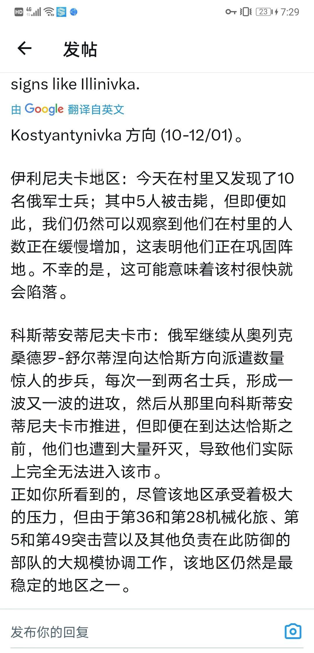 俄军小股郭队渗透到了康斯坦丁诺南偏西的伊林诺夫卡。如此下去,当俄罗斯人渗透数量累积到一定规模,伊林诺夫卡自然就会被攻占。 康斯坦丁诺夫卡无疑是冬季攻势的主要目标。这个战线据报道:俄已集结了9万大军,并有1万预备部队,共10万大军。